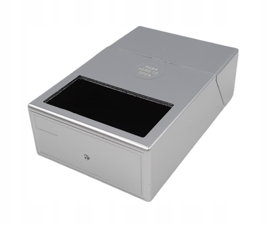 Предложение распространяется на портсигар, в который помещается пачка сигарет. После нажатия кнопки «Нажмите здесь, чтобы открыть» портсигар и коробка с сигаретами открываются. Не открывайте его силой, так как это может сломать защелку, удерживающую портсигар закрытым. Он пластиковый и вмещает максимум 20 сигарет, включая коробку. Размеры портсигара 9,5х6х2,9 см.