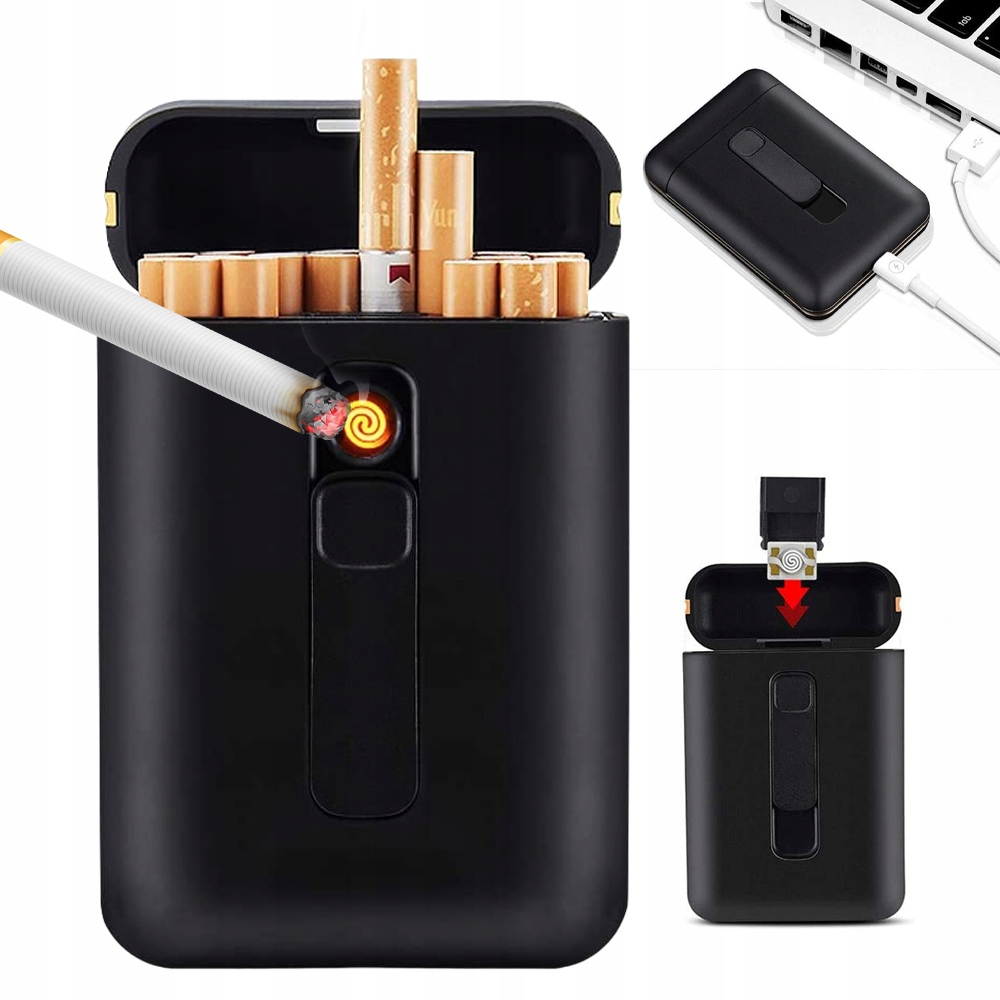 ПОРТСИГАР С USB ЗАЖИГАЛКОЙ, БЕСПЛАМЕННЫЙ КАРМАН