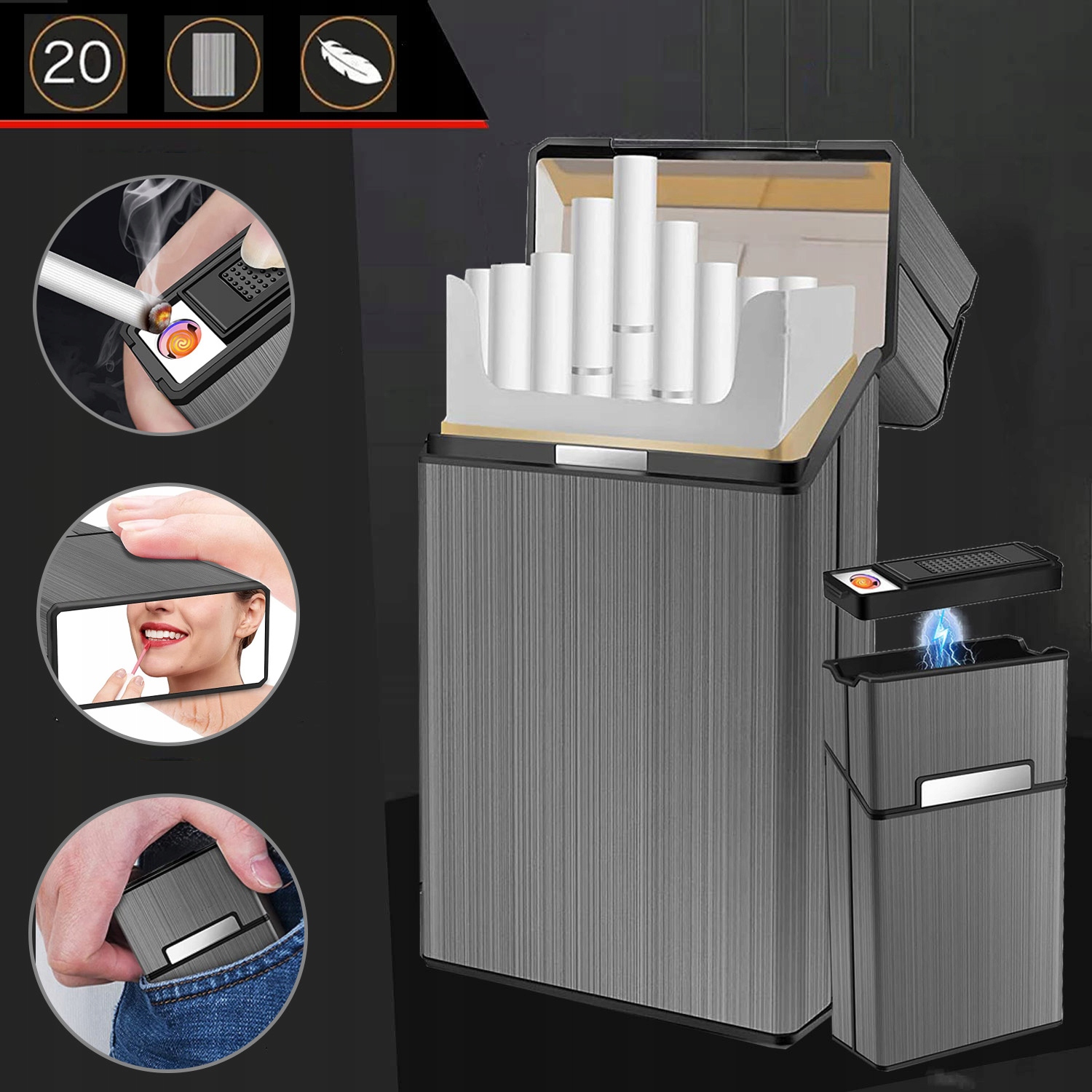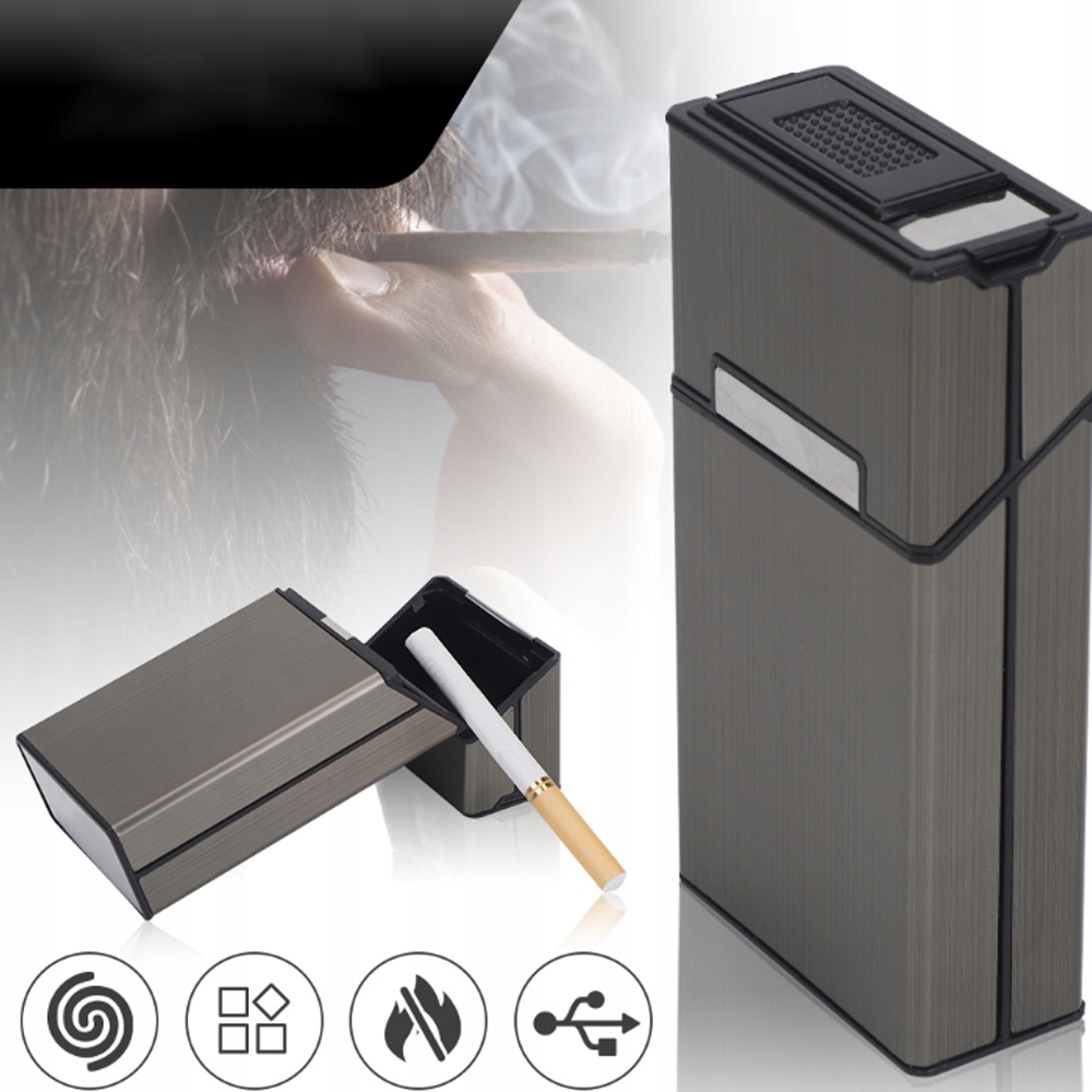ПОРТСИГАР С ЗАЖИГАЛКОЙ, НА 20 СИГАРЕТ, ЗАРЯЖАЕТСЯ ЧЕРЕЗ USB