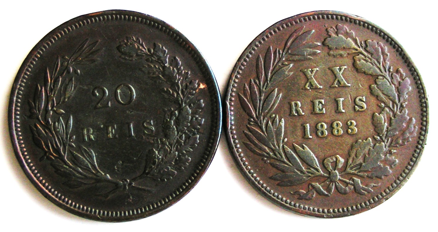Португальский набор 2х20 рейсов 1883/1892 гг., мед. Ницца