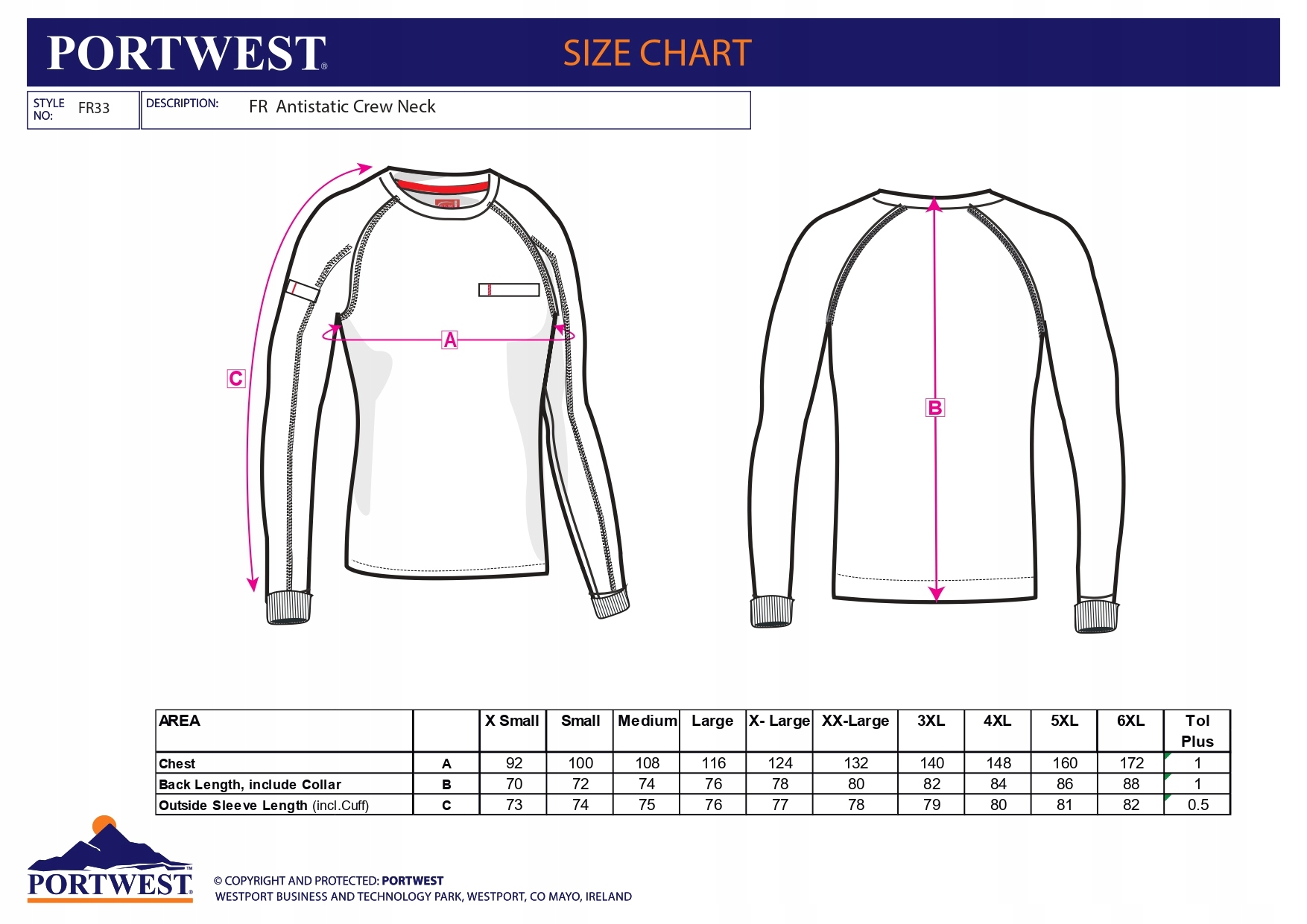 - >Рабочая футболка из огнестойкого и антистатического материала с длинным рукавом FR33 Portwest.
