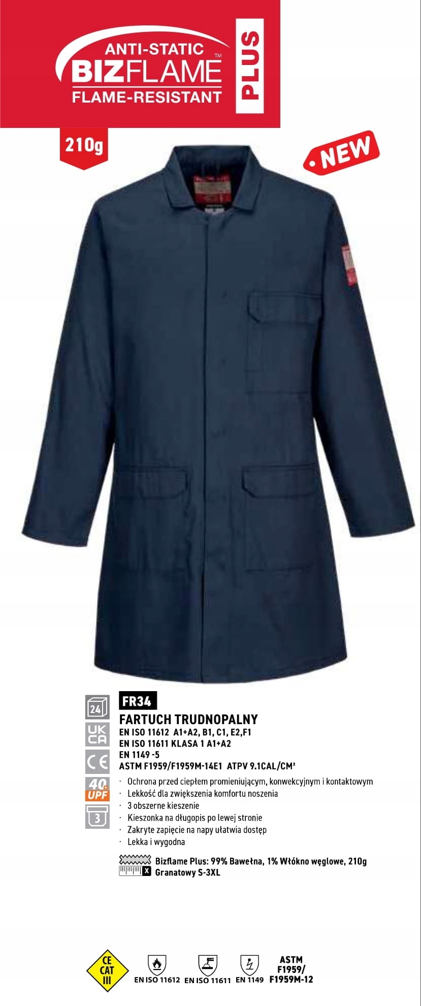 - Изготовлен из удобной, легкой и инновационной огнестойкой ткани саржевого переплетения.