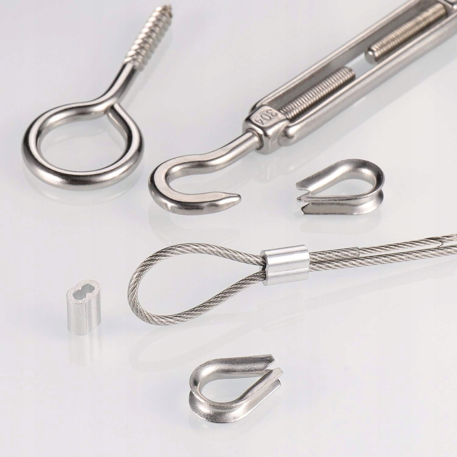 💪💪【Простая установка】Вы можете свободно отрезать нужную длину с помощью кусачек; алюминиевый зажимной контур. Мы рекомендуем использовать обжимной инструмент, проволочный трос, для защиты от износа. Каждая деталь соединена резьбой, которую очень легко собирать и разбирать, винт съемный, поэтому его можно использовать повторно.