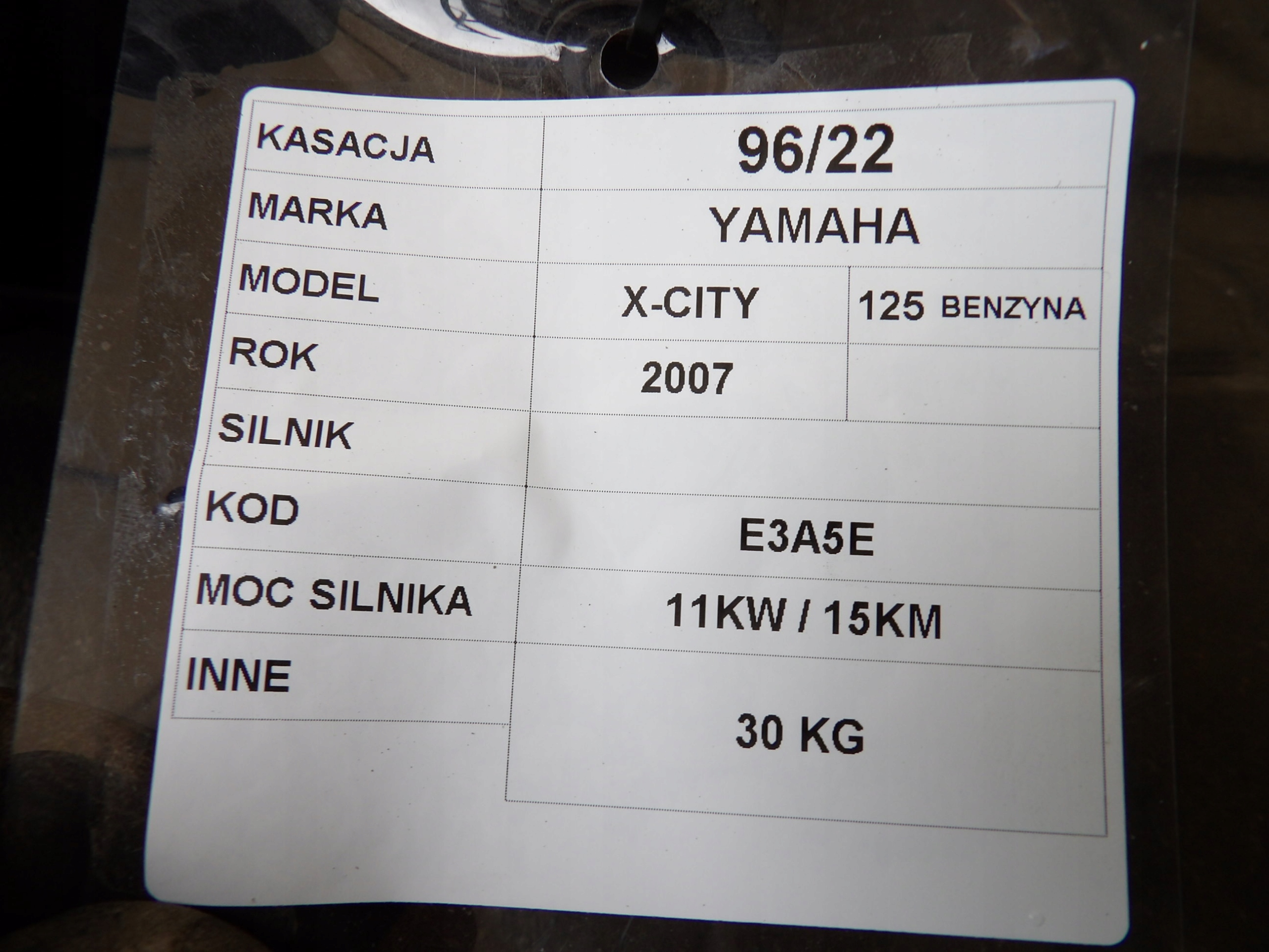 Пошкоджений двигун Yamaha X-City 125 E3A5E