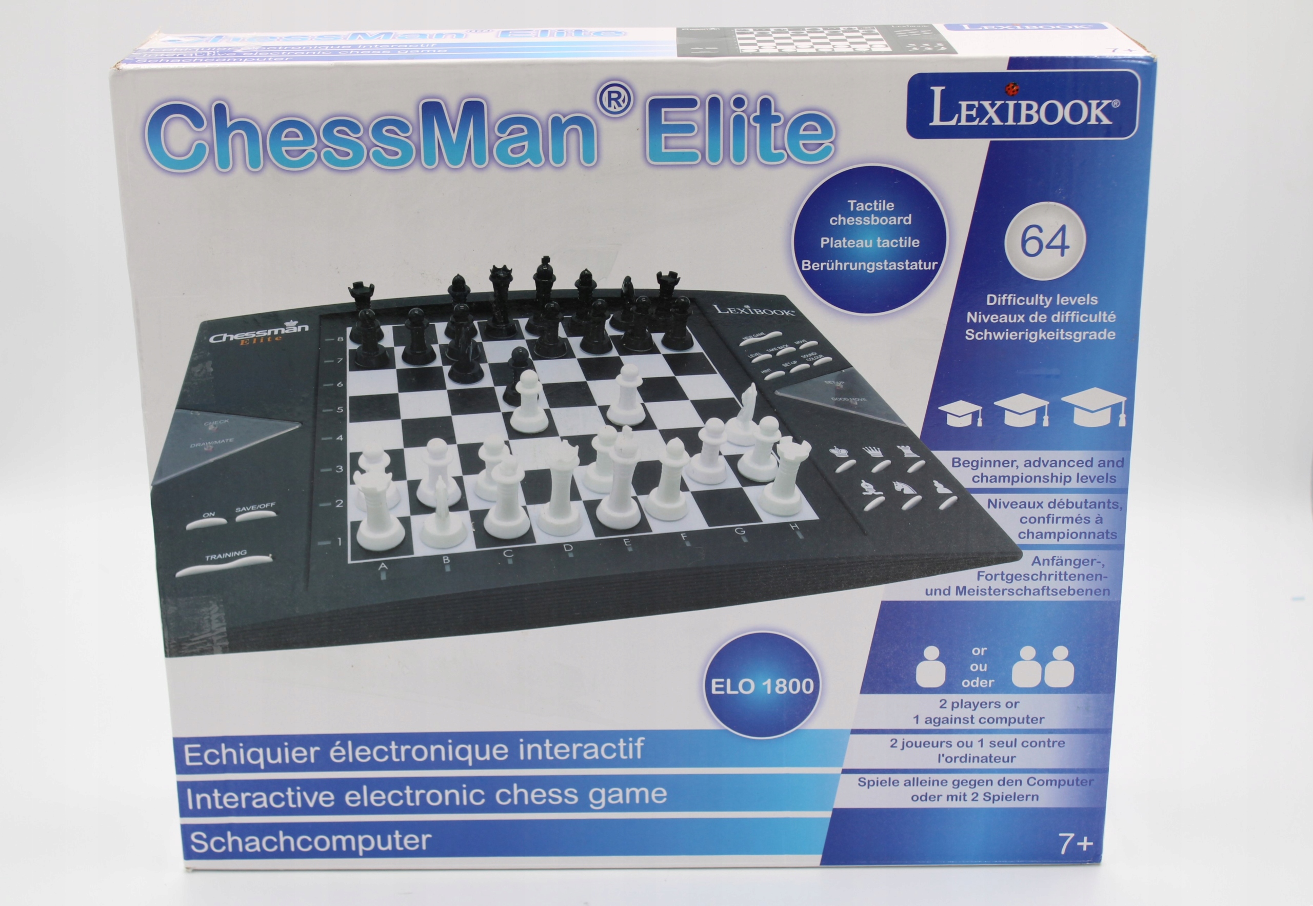 Lexibook ChessMan Elite — это продвинутая интерактивная электронная шахматная игра, предлагающая полное развлечение игрокам любого уровня подготовки. Благодаря 64 уровням сложности, разделенным на 4 игры, каждый игрок сможет улучшить свои навыки. Система рейтинга игроков Elo 1800 бросает вызов даже самым опытным игрокам. Игра оснащена 16 светодиодами, которые показывают выполняемые движения, что делает игру не только интеллектуальным испытанием, но и визуально привлекательной.