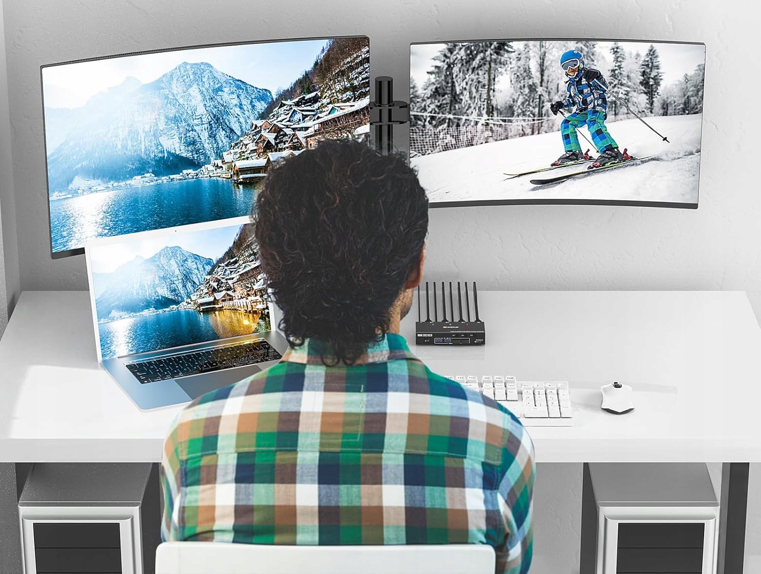 USB 3.0 HDMI 2,0 KVM Switch 3 PC 2 Мониторы - переключатель KVM с двумя мониторами позволяет управлять 3 компьютерами, используя один набор беспроводных сканеров и мониторов, поддерживает веб -камеры. Вы можете свободно переключаться между двумя мониторами, нажав «Windows+P», чтобы выбрать режим зеркала или расширенный режим экрана. Каждый компьютер требует 2 кабеля HDMI + 1 USB -кабель для подключения к переключателю KVM.