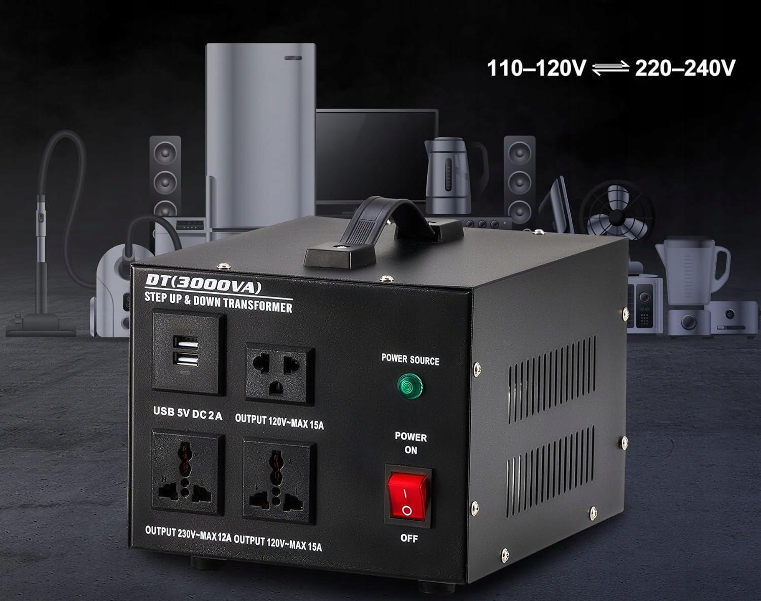 Преобразователь напряжения внизу и вниз: трансформатор напряжения 3000 Вт идеально преобразует напряжение между 220 В-240 В и 110 В-120 В, что облегчает использование американских устройств в ЕС и наоборот.