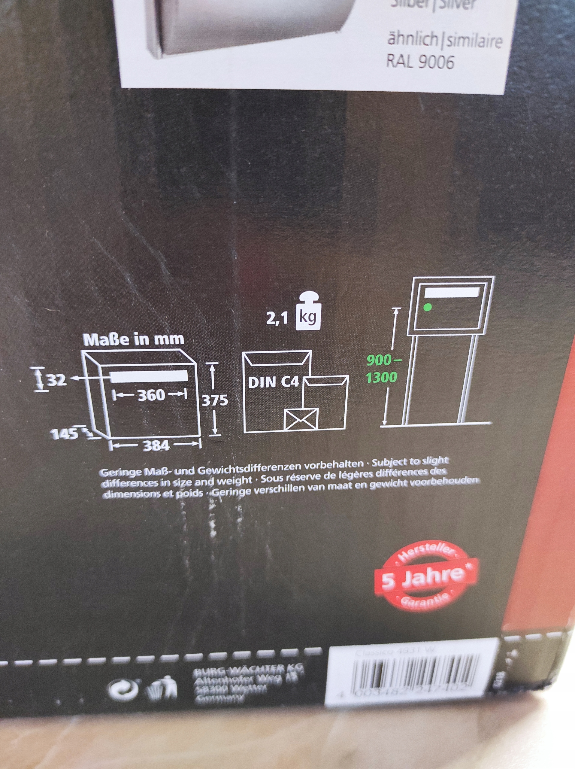 Белый почтовый ящик Burg Wächter CLASSICO 4931 — это чрезвычайно устойчивый к атмосферным воздействиям почтовый ящик, который можно разместить где угодно.