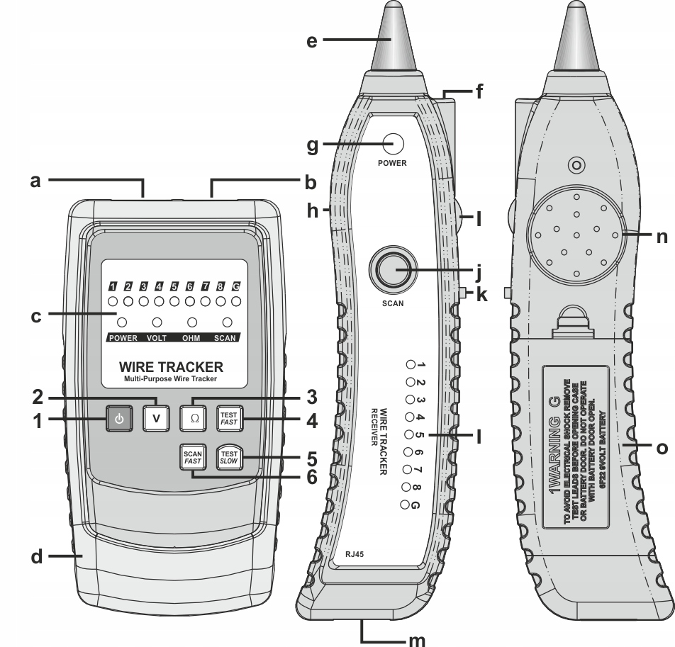 Профессиональное устройство для проверка сетевых кабелей, позволяет проверять проводку, находить пары проводов, проверять неисправности проводов.