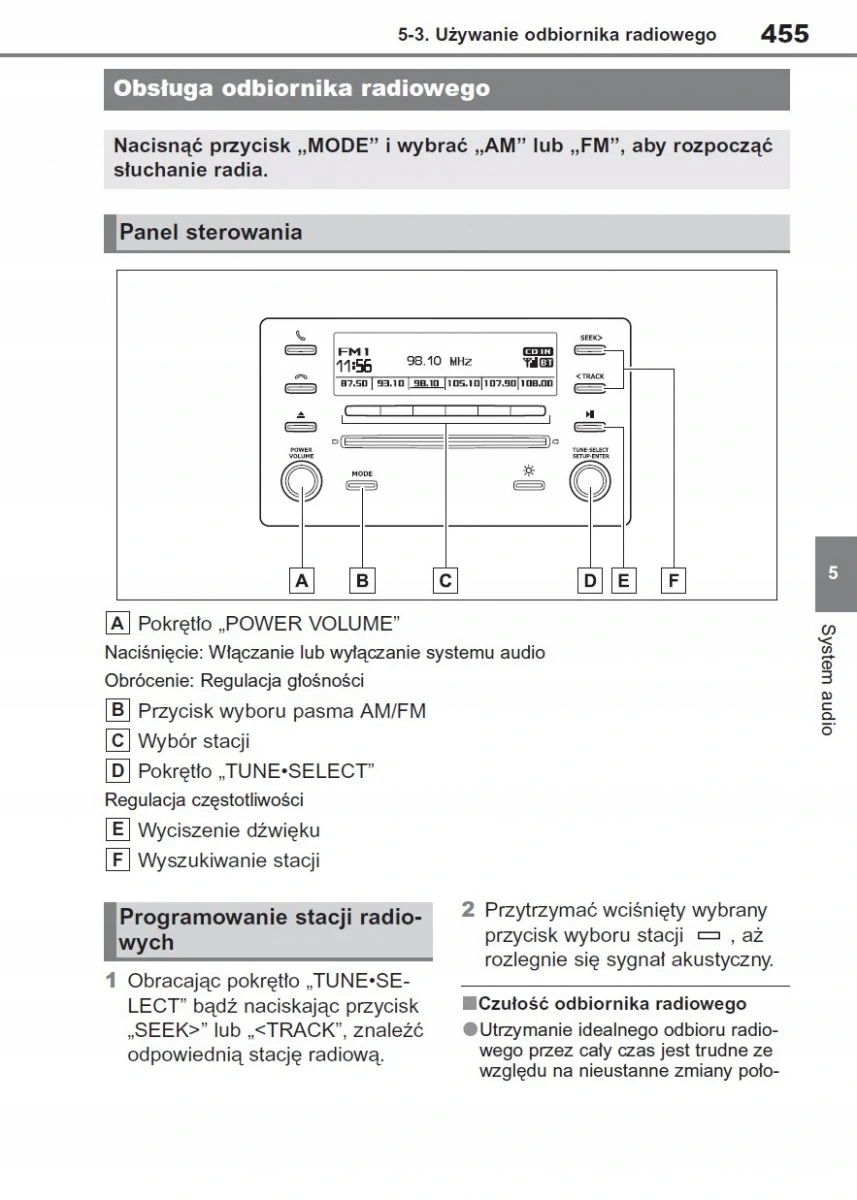 Руководство владельца Toyota содержит все версии оборудования и полезную информацию о том, как эффективно и безопасно использовать автомобиль, например: - указатели поворота, контрольные лампы открытия и закрытия - освещение и обзорность, сиденья, отсеки для хранения вещей, отопление, вентиляция, кондиционирование воздуха. - советы по вождению, эксплуатации, обслуживанию автомобиля - уровни жидкостей, проверка и доливка, аварийные операции, замена колес, предохранителей, замена лампочек - технические данные... и многое другое, что дает путешественникам ощущение безопасности и комфорта.Польское законодательство обязывает продавца приложить к . Руководство пользователя автомобиля новое, на польском языке.