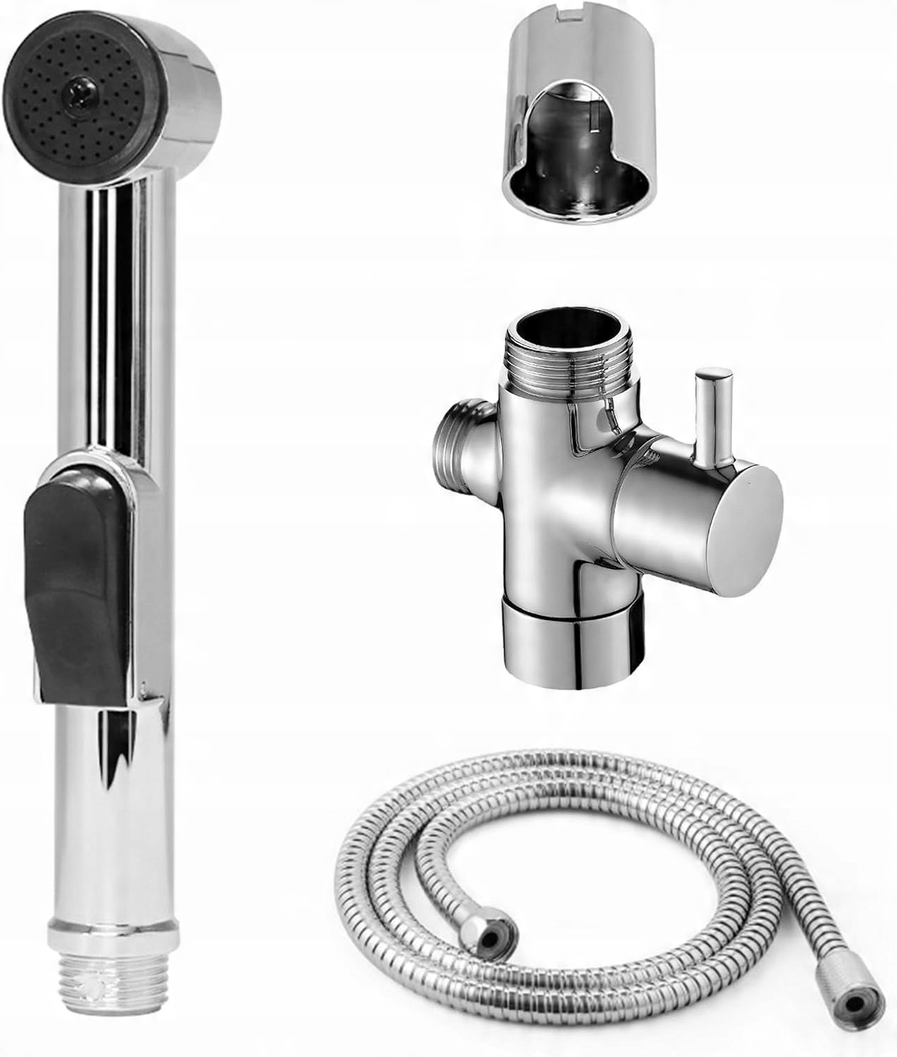 Душ биде состоит из высококачественного пластикового, прочного и прочного и безопасного и безопасного для использования. Блестящая хромированная поверхность устойчива к царапинам, коррозии и обесцвечиванию.