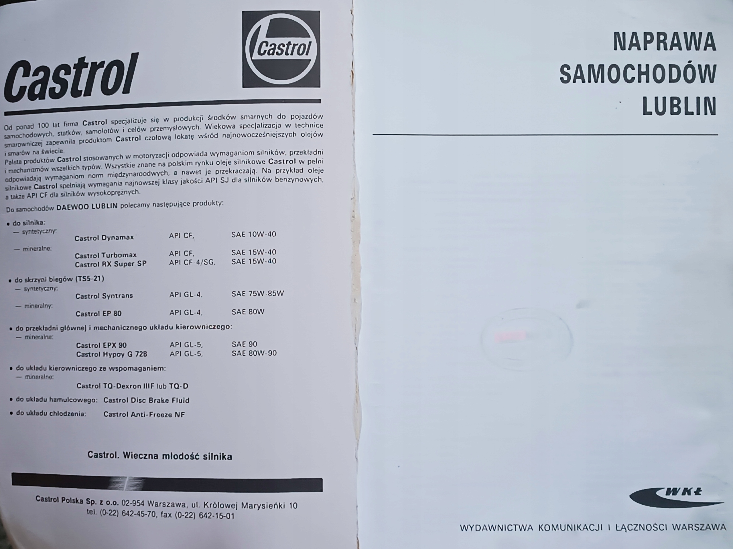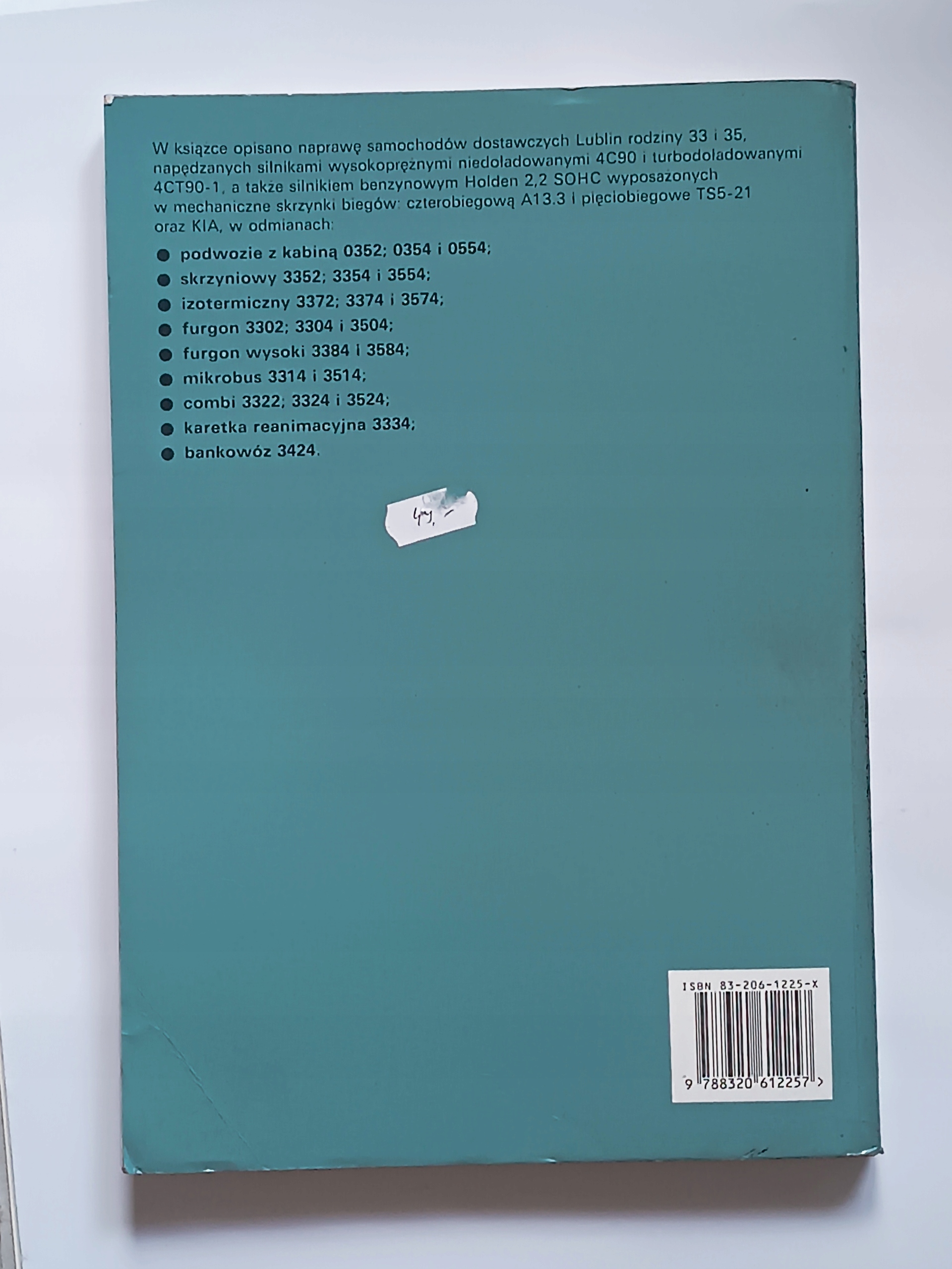 The book describes the repair of Lublin delivery vehicles 33 and 35, powered by 4C90 with 4C90 and turbocharged 4ct90-1, as well as the Holden 2.2 SOHC gasoline engine equipped with mechanical gearboxes: A13.3 and five-speed TS5-21 and KIA, in variations: <