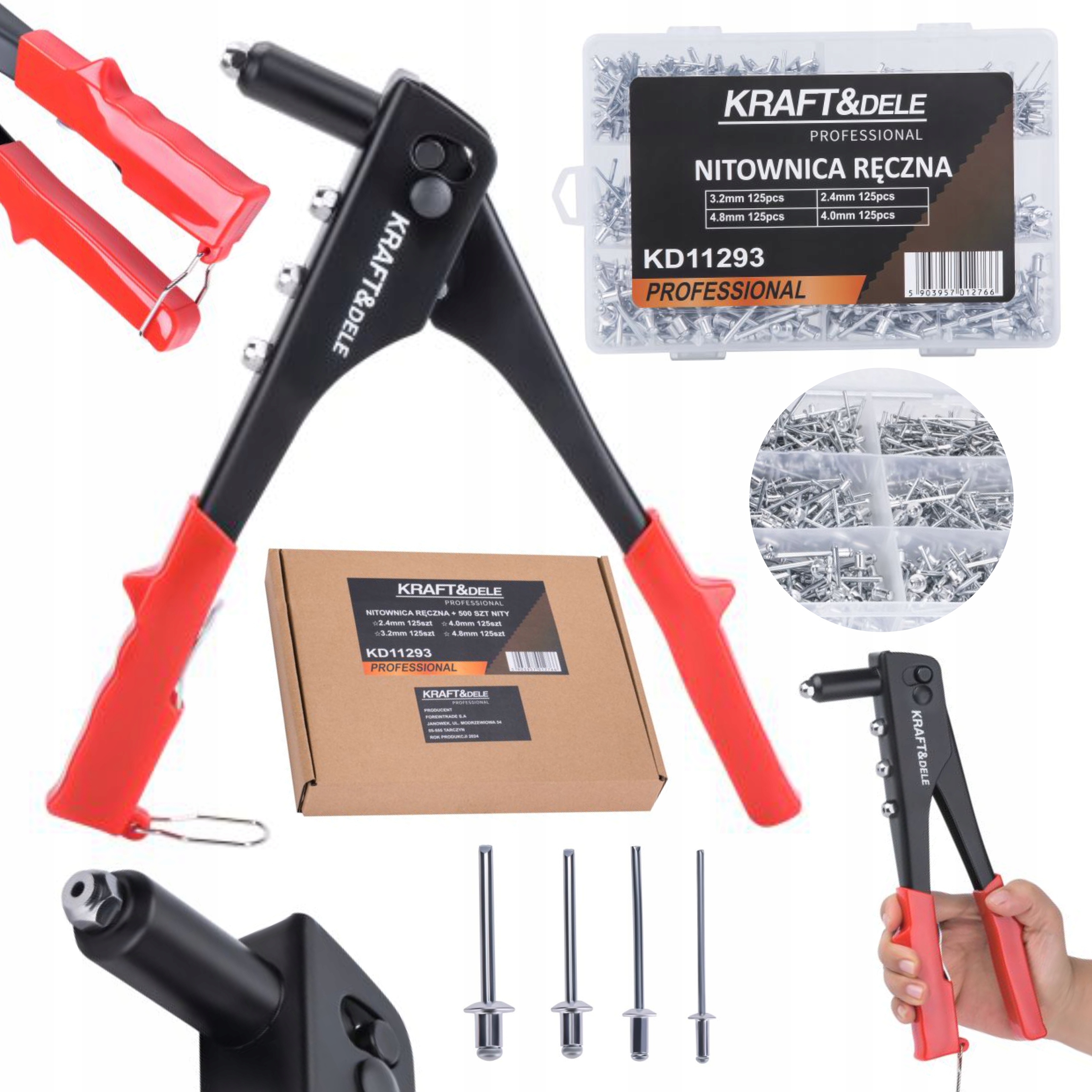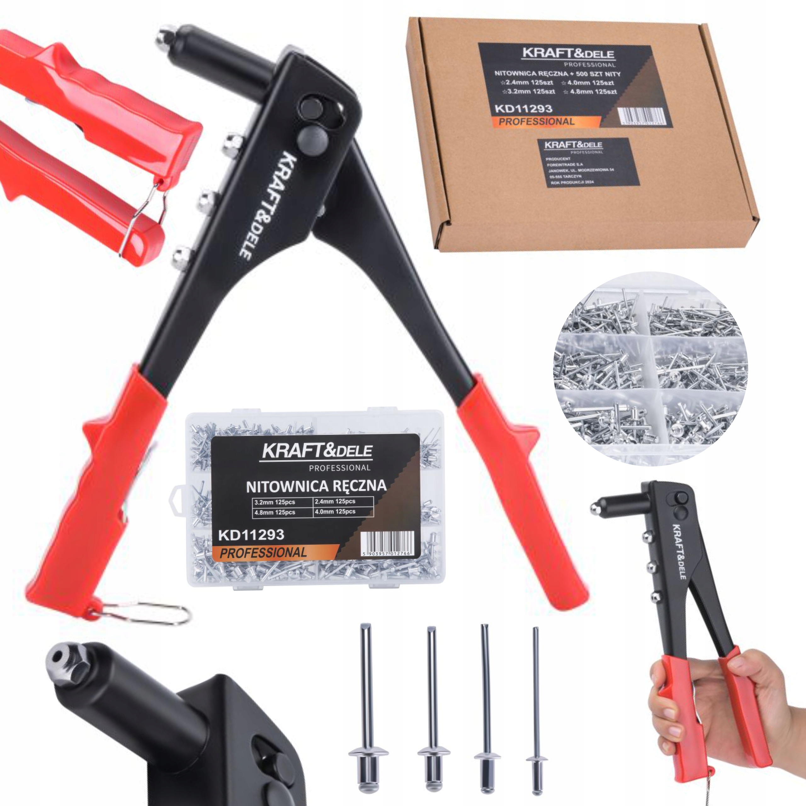 ⭐profesional Model Rhinage Model KD11293 Польский бренд Kraft & Dele. Сделано из самых качественных материалов, включая сталь и алюминий. > Использование стальных и алюминиевых заклепок с диаметрами: 2,4 мм, 3,2 мм, 4,0 мм и 4,8 мм (за исключением диаметра 4,8 мм для нержавеющей стали). /b> zapewnia jej wytrzymałoś i długotrwałe użytkowanie работа