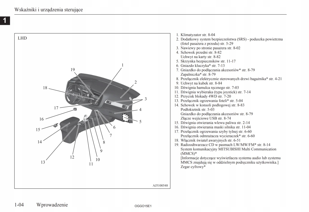 Руководство по эксплуатации Mitsubishi содержит все версии оборудования и полезную информацию о том, как эффективно и безопасно использовать автомобиль, например: - индикаторы, контрольные лампы, открывание и закрывание - освещение и обзорность, сиденья, отсеки для хранения вещей, отопление, вентиляция, кондиционирование воздуха. - советы по вождению, эксплуатации, обслуживанию автомобиля - уровни жидкостей, проверка и доливка, аварийные операции, замена колес, предохранителей, замена лампочек - технические данные... и многое другое, дающее путешественникам ощущение безопасности и комфорта. Польское законодательство обязывает продавца приложить к автомобилю руководство по эксплуатации на польском языке. Руководство пользователя автомобиля новое, на польском языке.