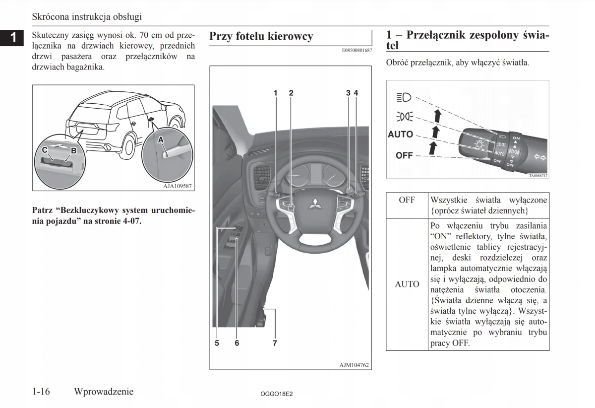Руководство по эксплуатации Mitsubishi содержит все версии оборудования и полезную информацию о том, как эффективно и безопасно использовать автомобиль, например: - индикаторы, контрольные лампы, открывание и закрывание - освещение и обзорность, сиденья, отсеки для хранения вещей, отопление, вентиляция, кондиционирование воздуха. - советы по вождению, эксплуатации, обслуживанию автомобиля - уровни жидкостей, проверка и доливка, аварийные операции, замена колес, предохранителей, замена лампочек - технические данные... и многое другое, дающее путешественникам ощущение безопасности и комфорта. Польское законодательство обязывает продавца приложить к автомобилю руководство по эксплуатации на польском языке. Руководство пользователя автомобиля новое, на польском языке.