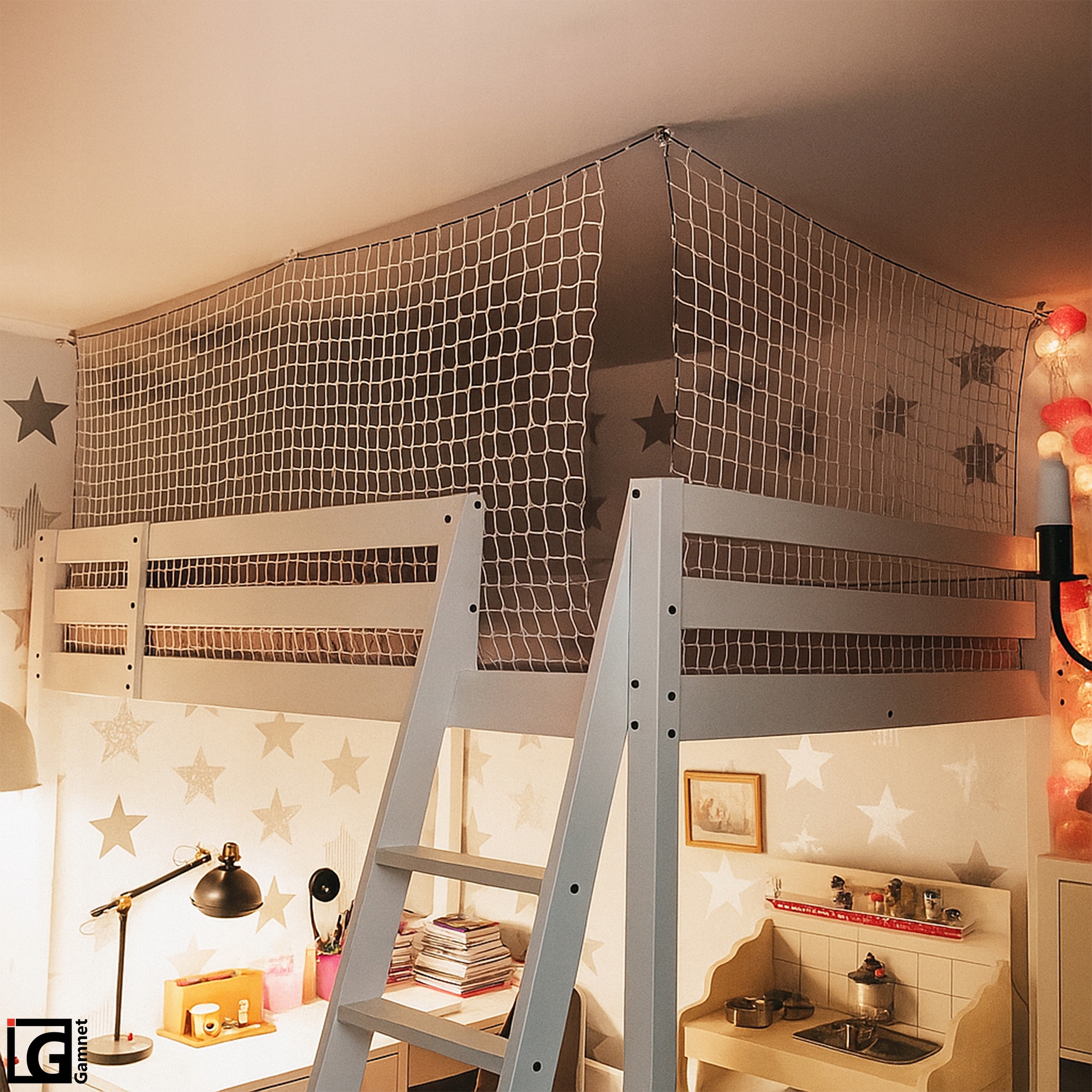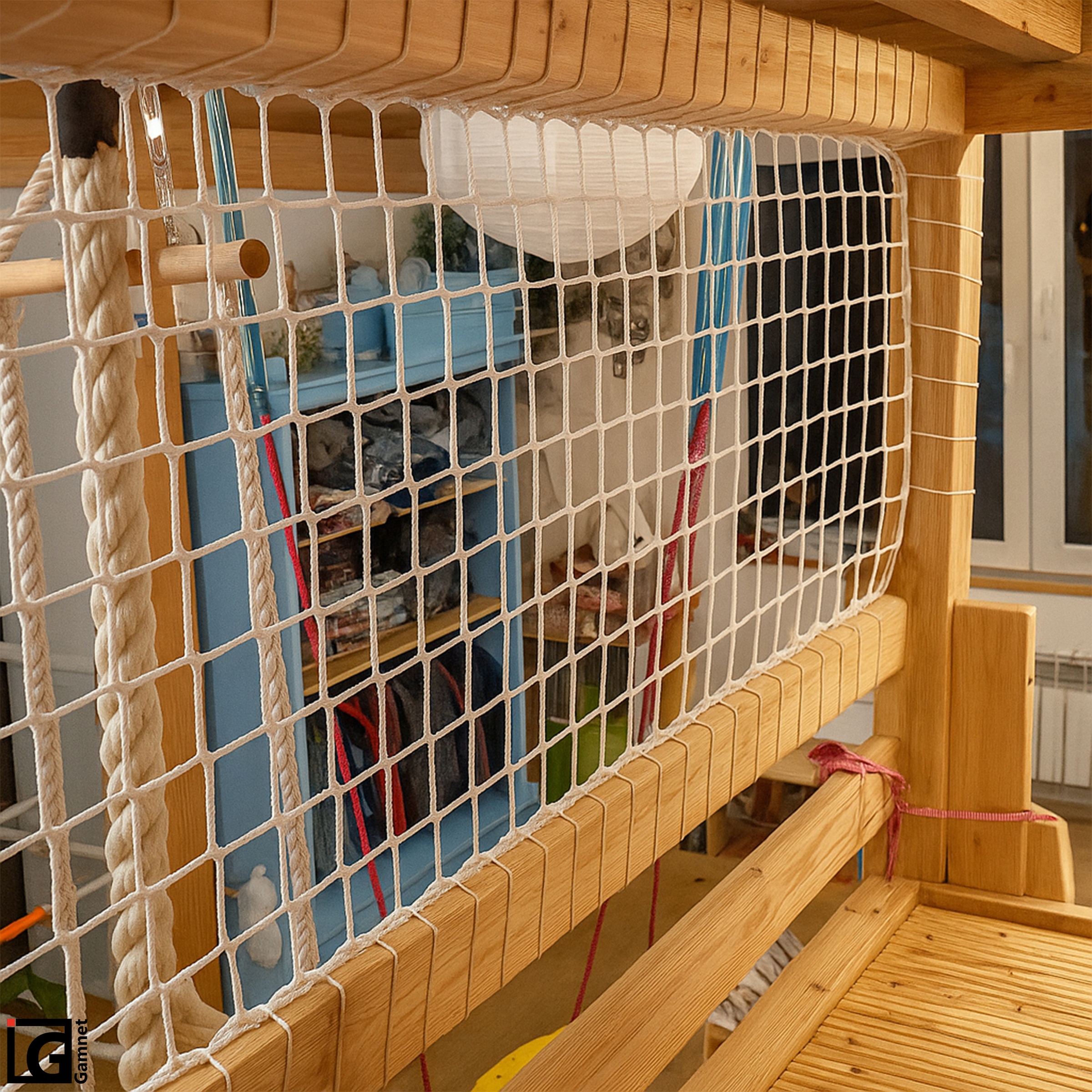 Обратите внимание, что изделие не заменяет непосредственный контроль со стороны взрослого. Сетку нельзя использовать в качестве элемента для лазания или подвергать чрезмерным нагрузкам. Перед установкой убедитесь, что сетка не соприкасается с острыми краями или элементами, которые могут порезать или ослабить материал. Продукт следует использовать только по назначению.