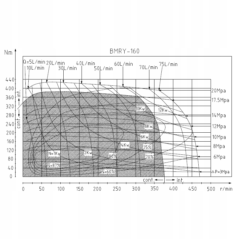 Усиленный гидравлический двигатель Bmry 160, предназначенный для тяжелой работы на сельскохозяйственных и промышленных устройствах. Максимальные параметры в непрерывной работе: поток 60 л/мин, оборот 375 об/мин, давление 175 бар, мощность 14,8 кВт, крутящий момент 370 Нм