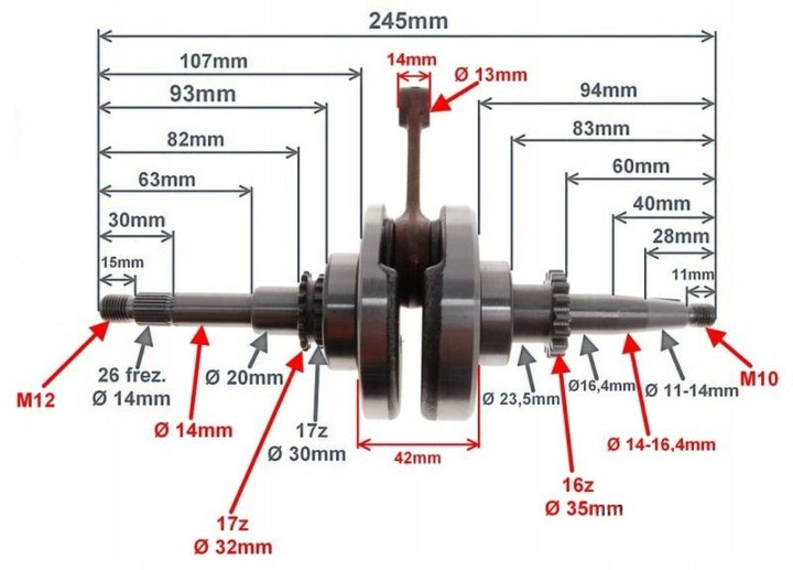 Усиленный коленвал GY6 4T 50/80 16T Цепь ГРМ Barton Kingway