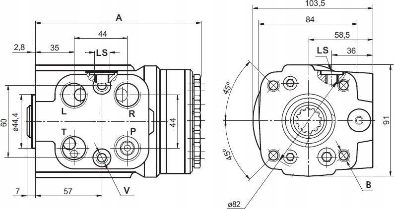 Orbitrol 315 ON (OPEN NORMALLY - нормально открытый) - когда руль не меняет положения, масло свободно движется в системе орбитрола и течет через обратку, попадая в бачок. Благодаря этому насос разгружается во время работы.