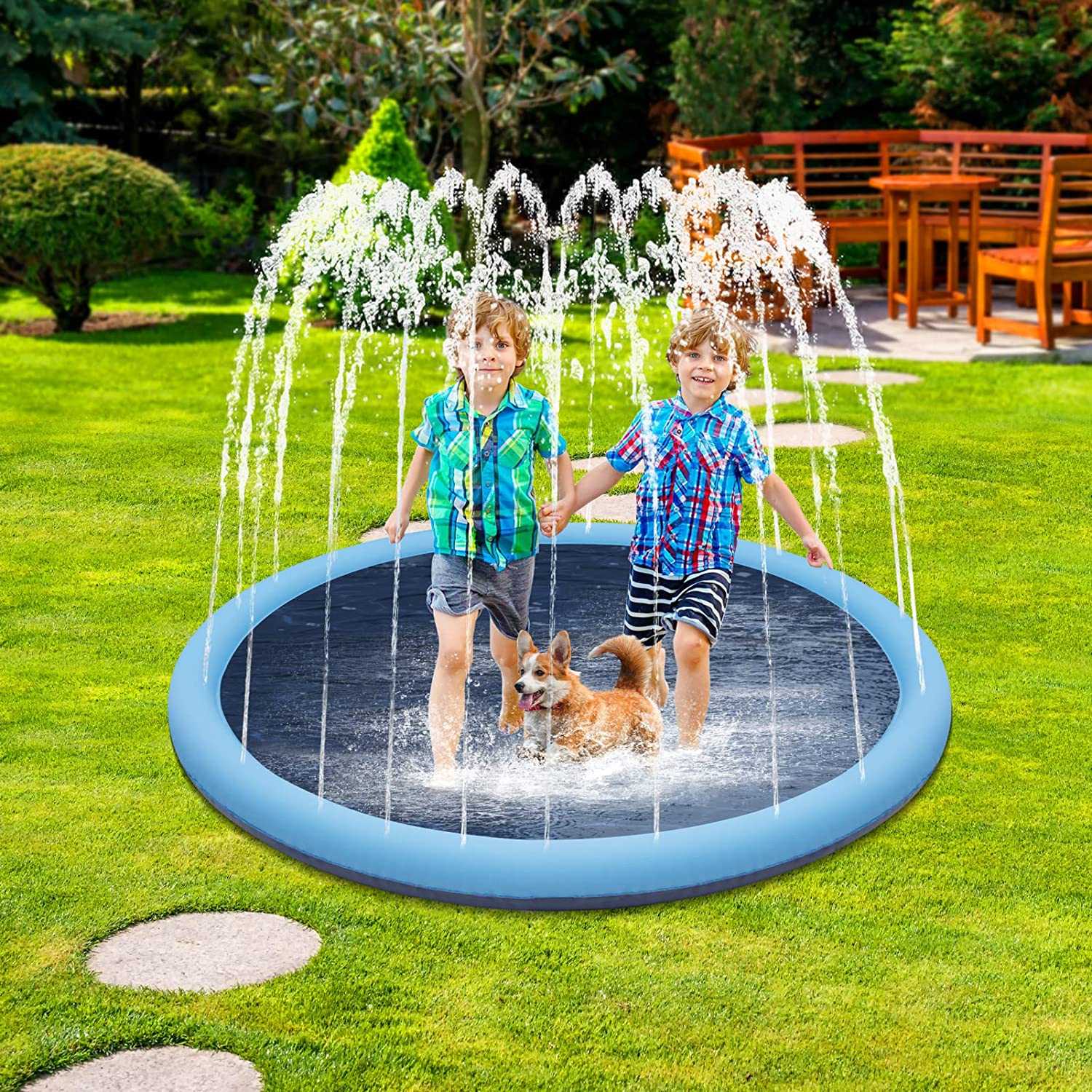 Разбрызгивающий коврик животного брызга с водяными игрушками для собак голубой