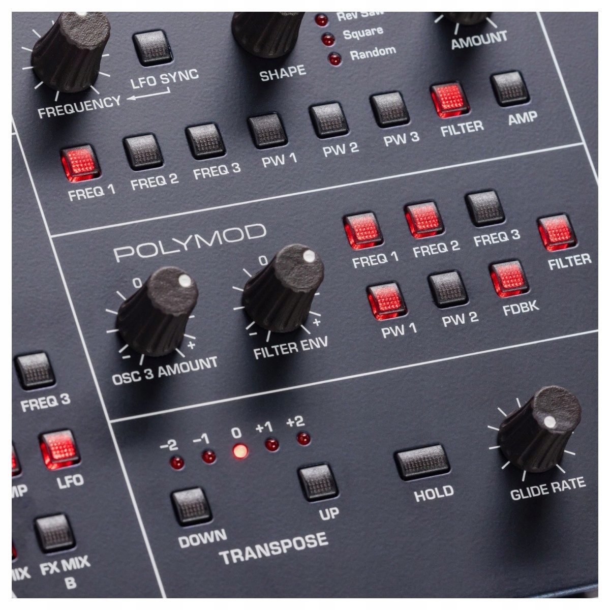 Одной из самых уникальных особенностей Trigon-6 является классическая секция Poly Mod от Sequential, которая используется для создания новых захватывающих звуков. Огибающая фильтра и генератор 3 (с биполярным управлением) действуют как источники модуляции, цели которых включают частоту генераторов 1, 2 и 3, ширину импульса генераторов 1, 2 и 3, срез фильтра и обратную связь. Расширьте количество осцилляторов до 18 (одновременно) с помощью режима Unison с настраиваемым количеством голосов для дополнительной гибкости.