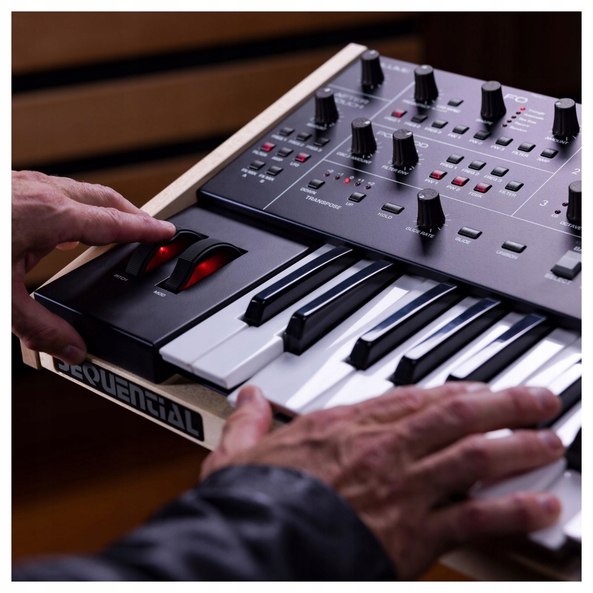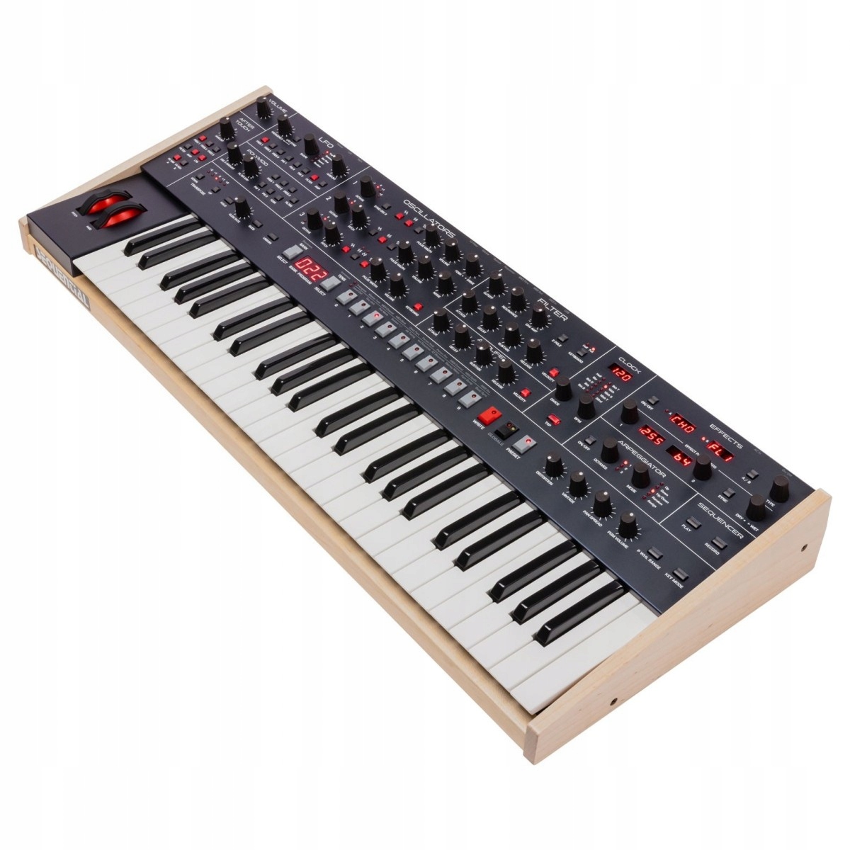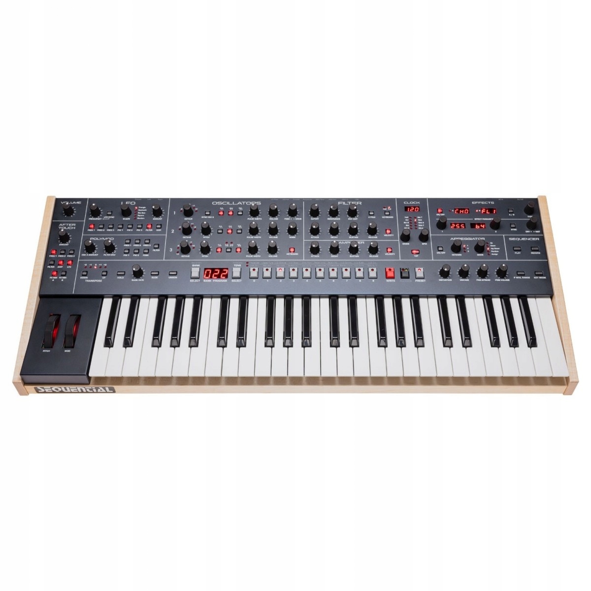 Sequential уже давно пользуется уважением в музыкальном мире за создание одних из самых легендарных синтезаторов, которые использовались для создания бесчисленных хитов. Оставаясь верным дизайну и характеру классических синтезаторов, Trigon-6 имеет винтажный вид, дополнен деревянными боковыми панелями и классическими элементами управления. Оставаясь верным своим винтажным корням, Trigon-6 от Sequential разработан с учетом требований современного пользователя и оснащен ручкой высоты/модуляции с подсветкой и встроенным USB-разъемом, поэтому его можно использовать для создания цифровой музыки. На задней панели синтезатора также имеется разъем MIDI I/O/Thru и входы для регулировки громкости, сустейна, параметров секвенсора и LP-фильтра. Он также оснащен стереофоническими аудиовыходами и выходом для наушников 1/4 дюйма.