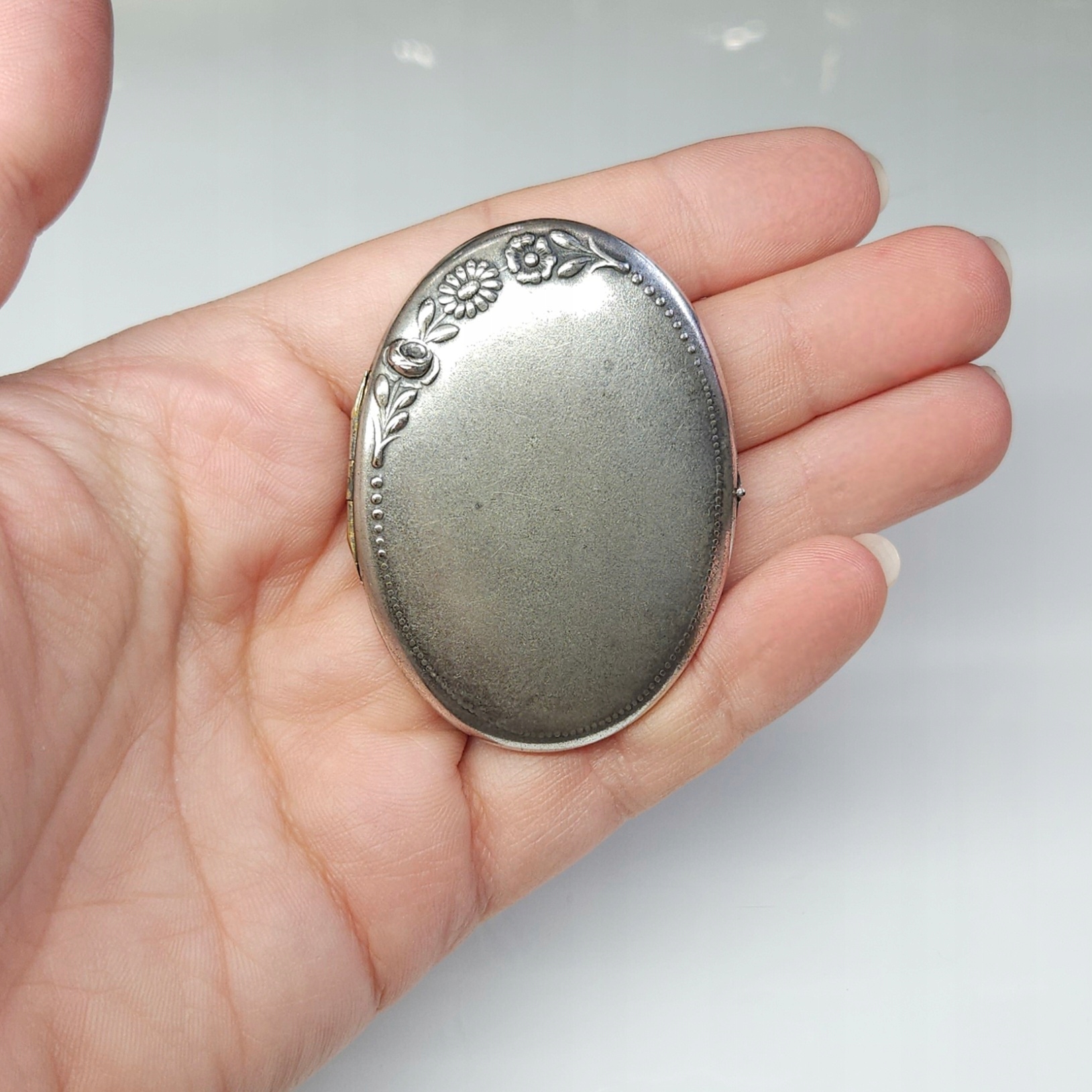 Posrebrzany sekretnik z lusterkiem, alpaka srebrzona, pocz. XXw.