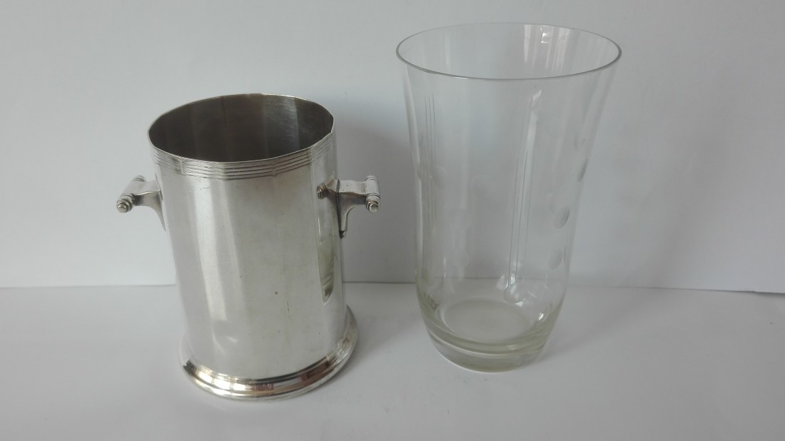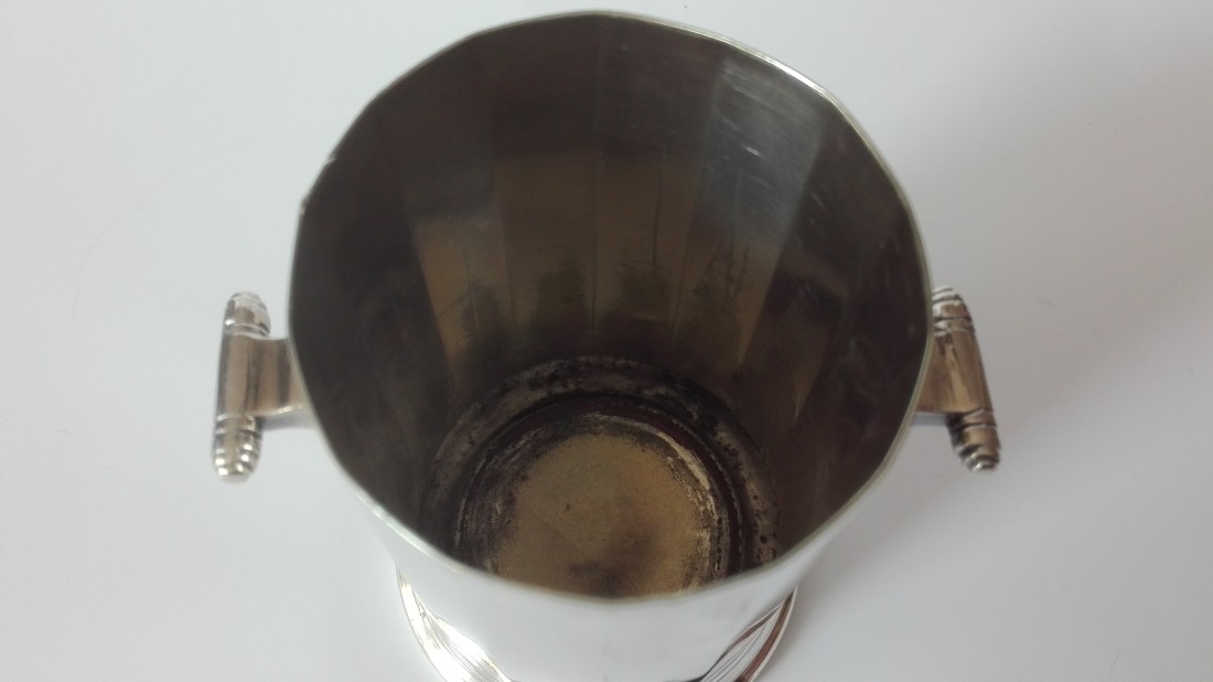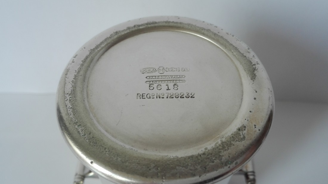 Красивая, старинная, посеребренная емкость - ведерко для специй, меда, горчицы, хрена, льда. подпись S.L TD EPNS A1KINGSWAYPLATE MADE IN ENGLAND 5618 REG 72922. Товар не новый, на фотографиях видны небольшие вмятины и потертости стекло - старое стекло, полированное [не оригинальная вставка ведра]