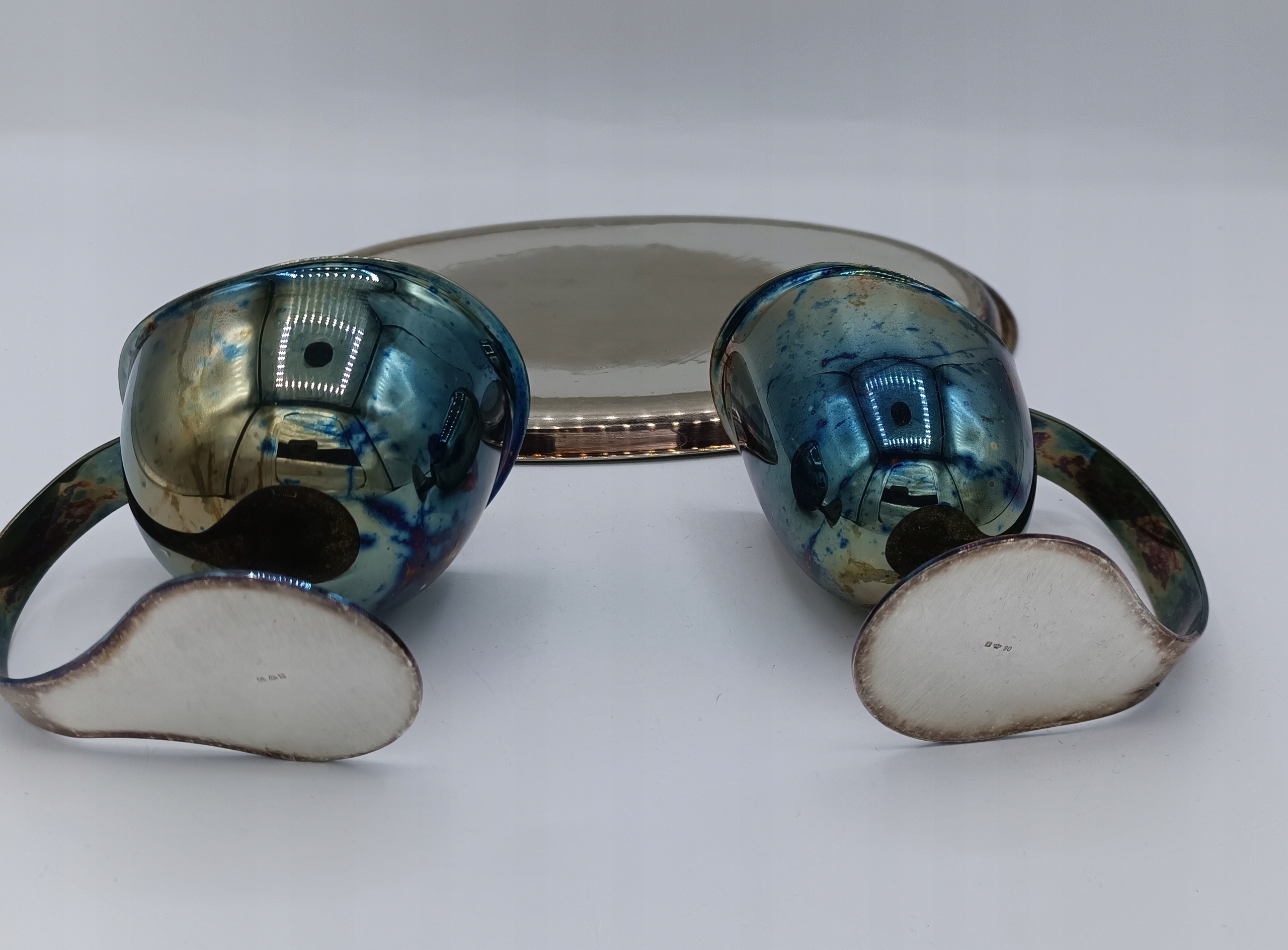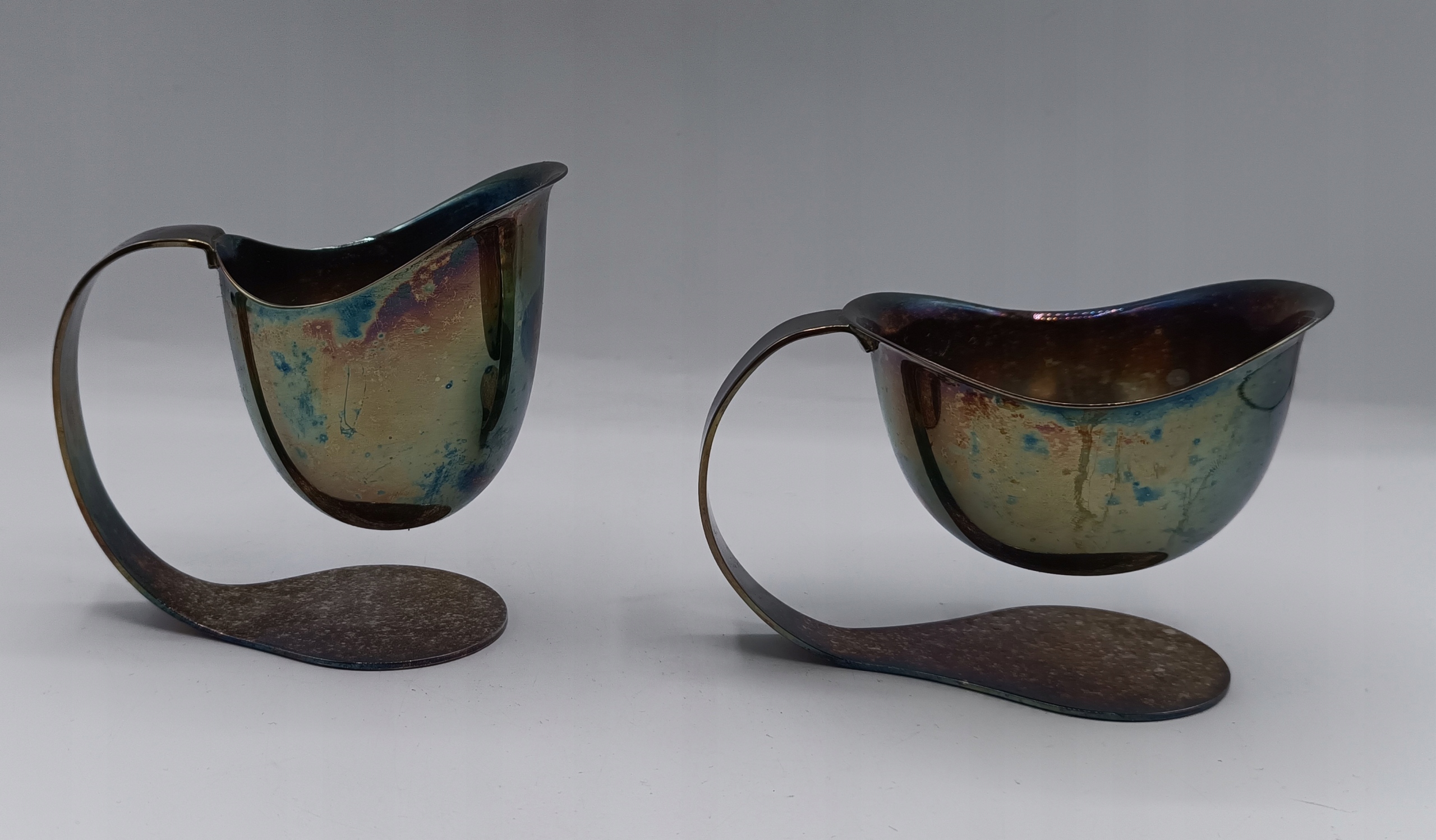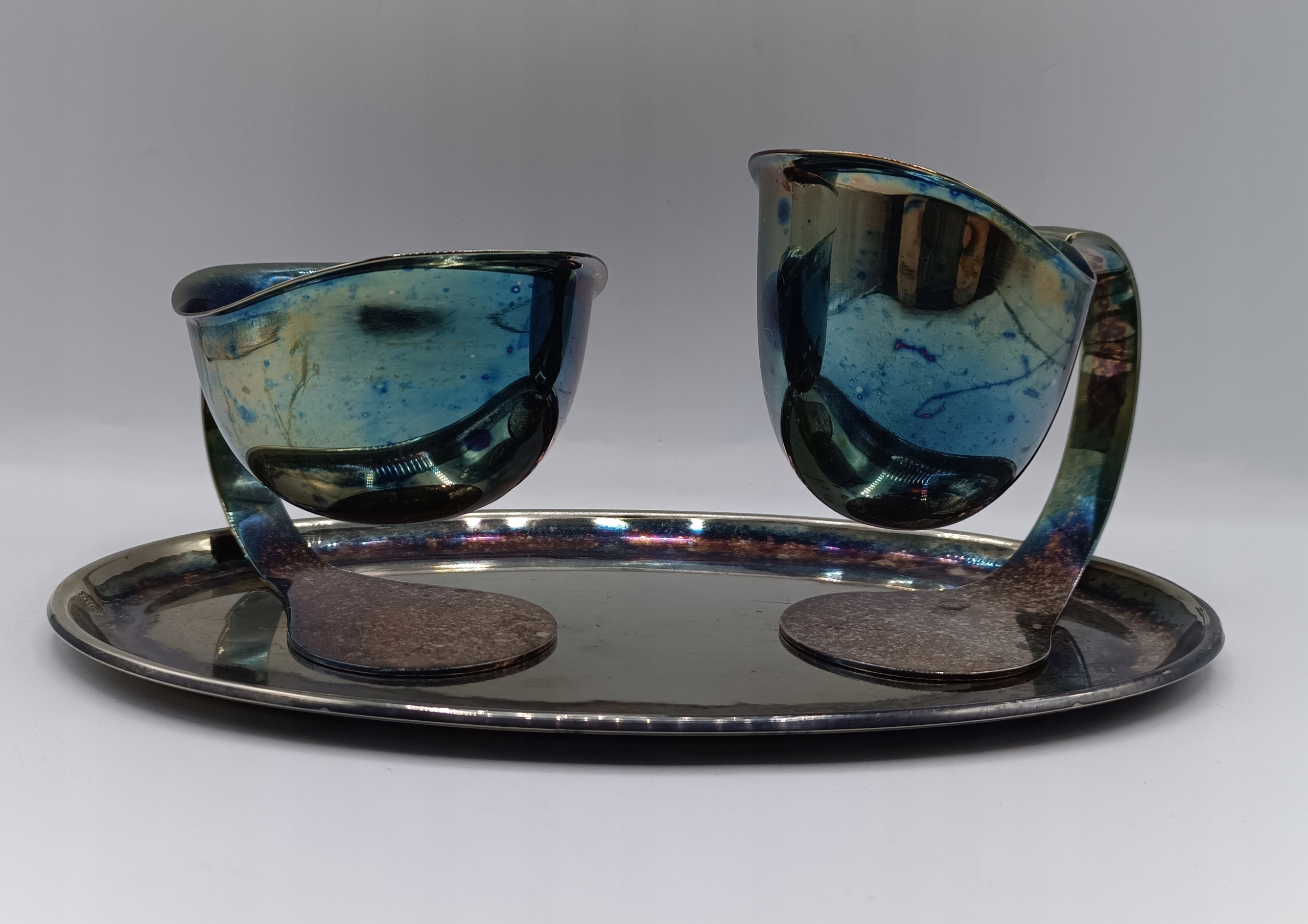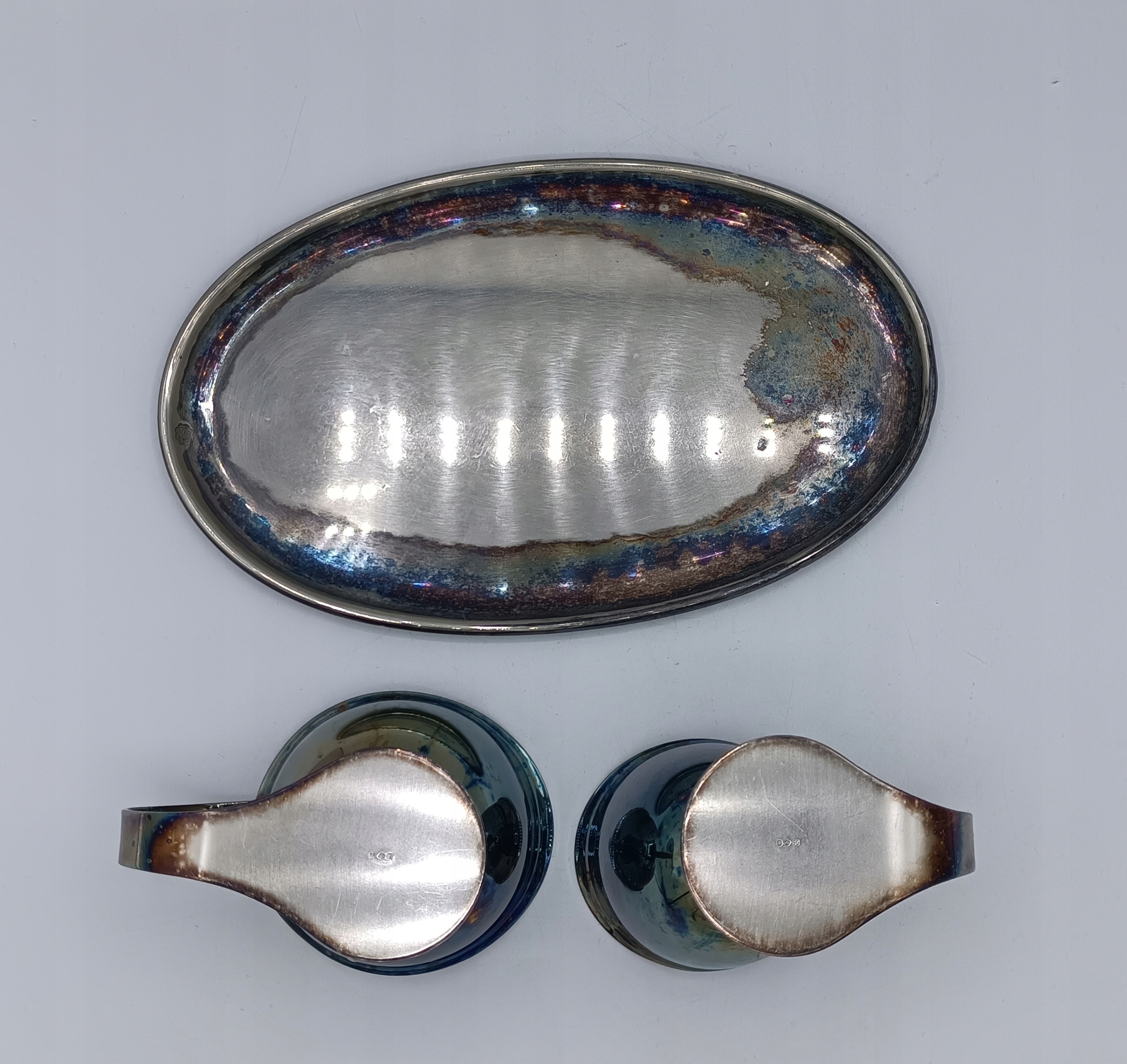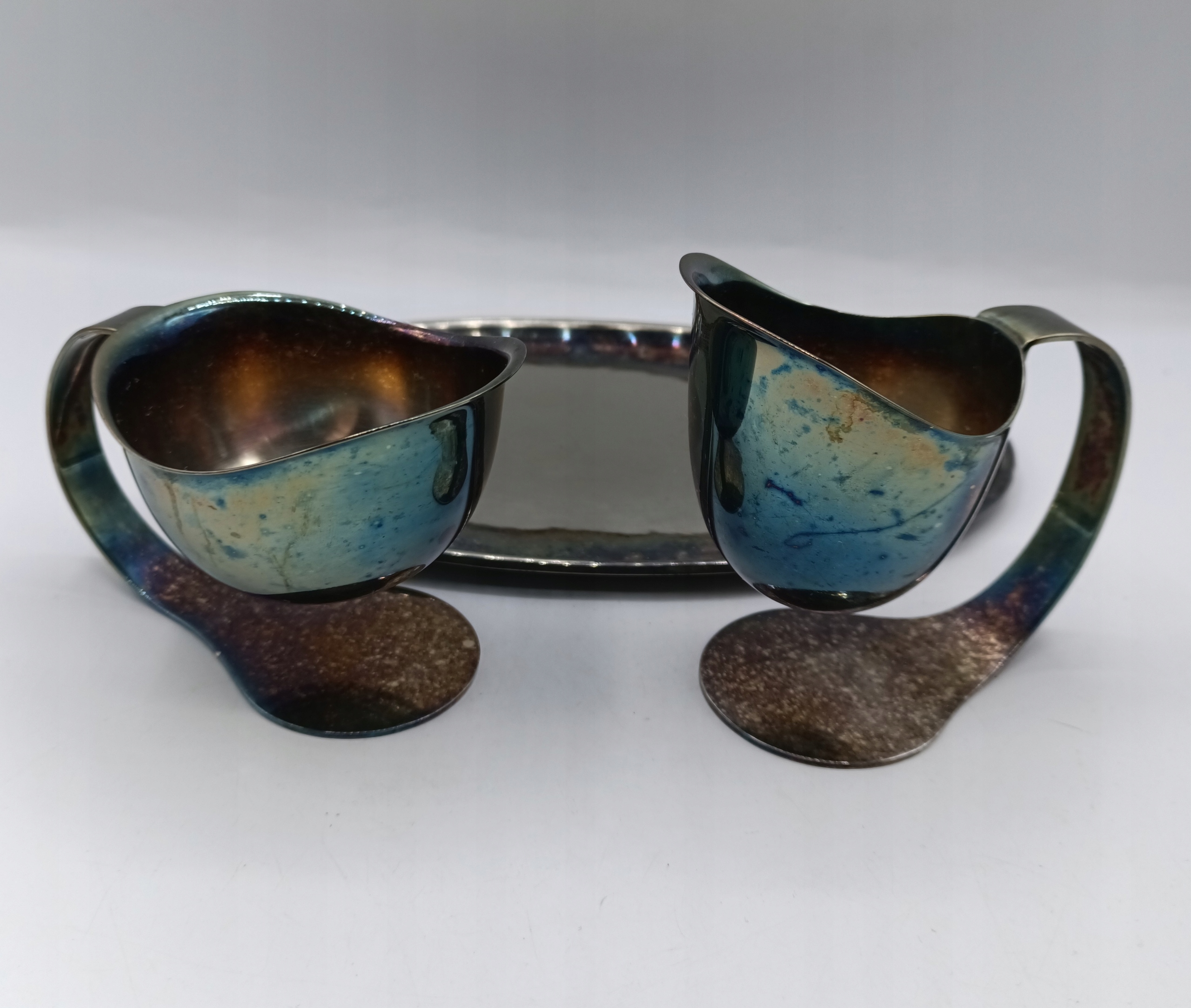 Посеребренный сервиз, 3 предмета - интересные ножки - подписанный - винтаж