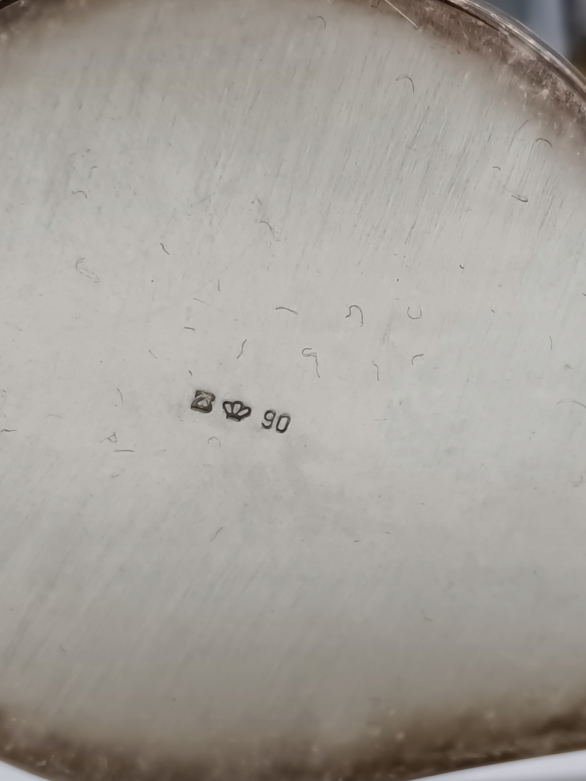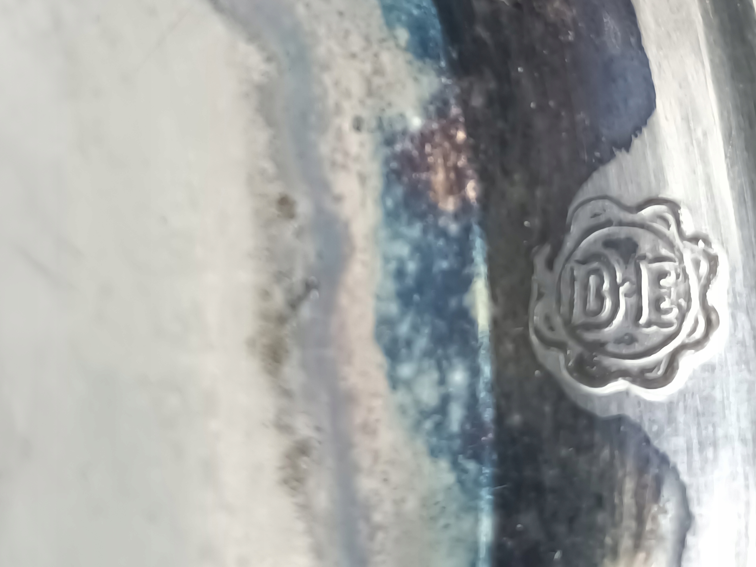 - три (3) части сервиза - две посеребренные чаши с подписью сердца и короны 90, и посеребренная тарелка - с подписью DE, Vintage -