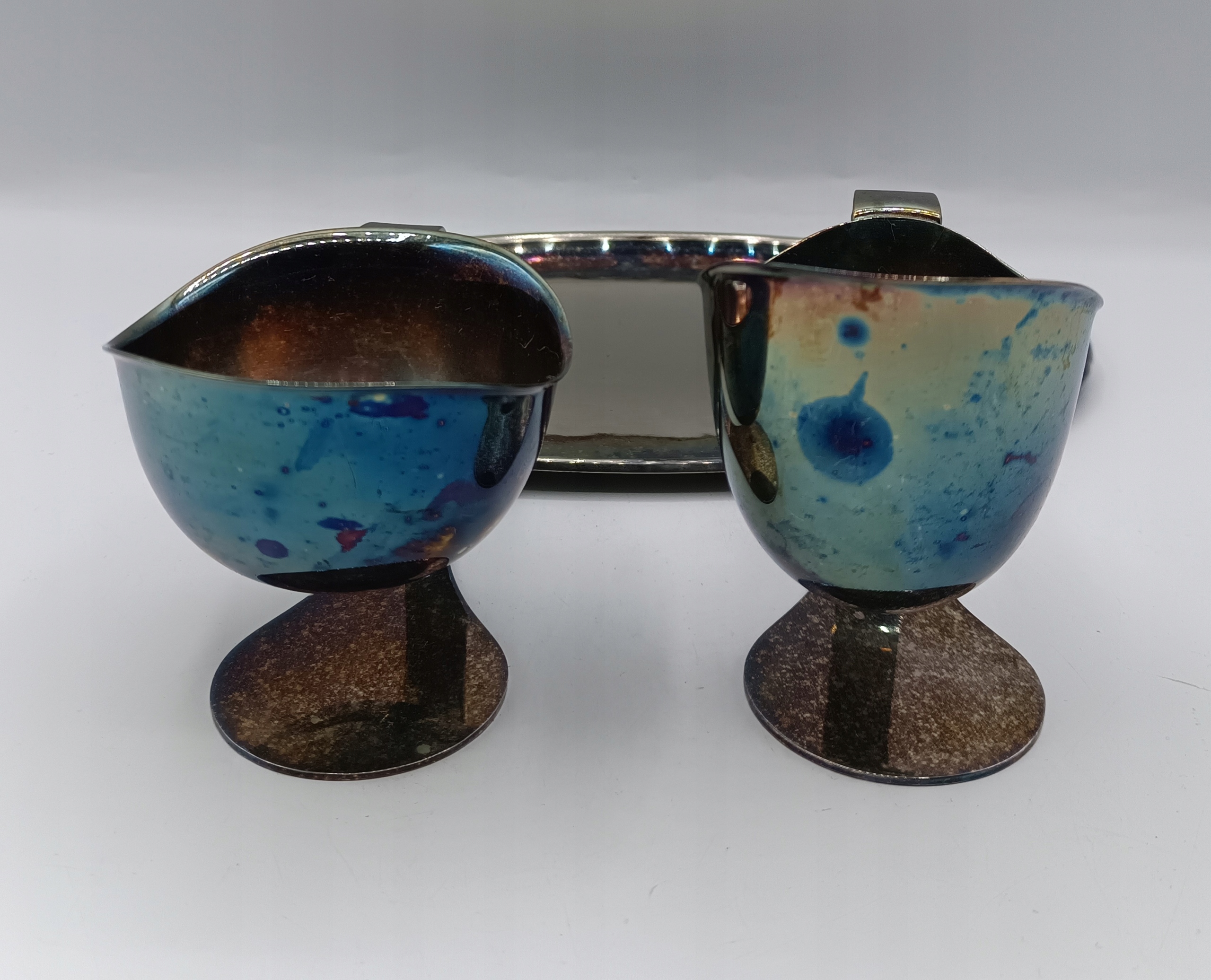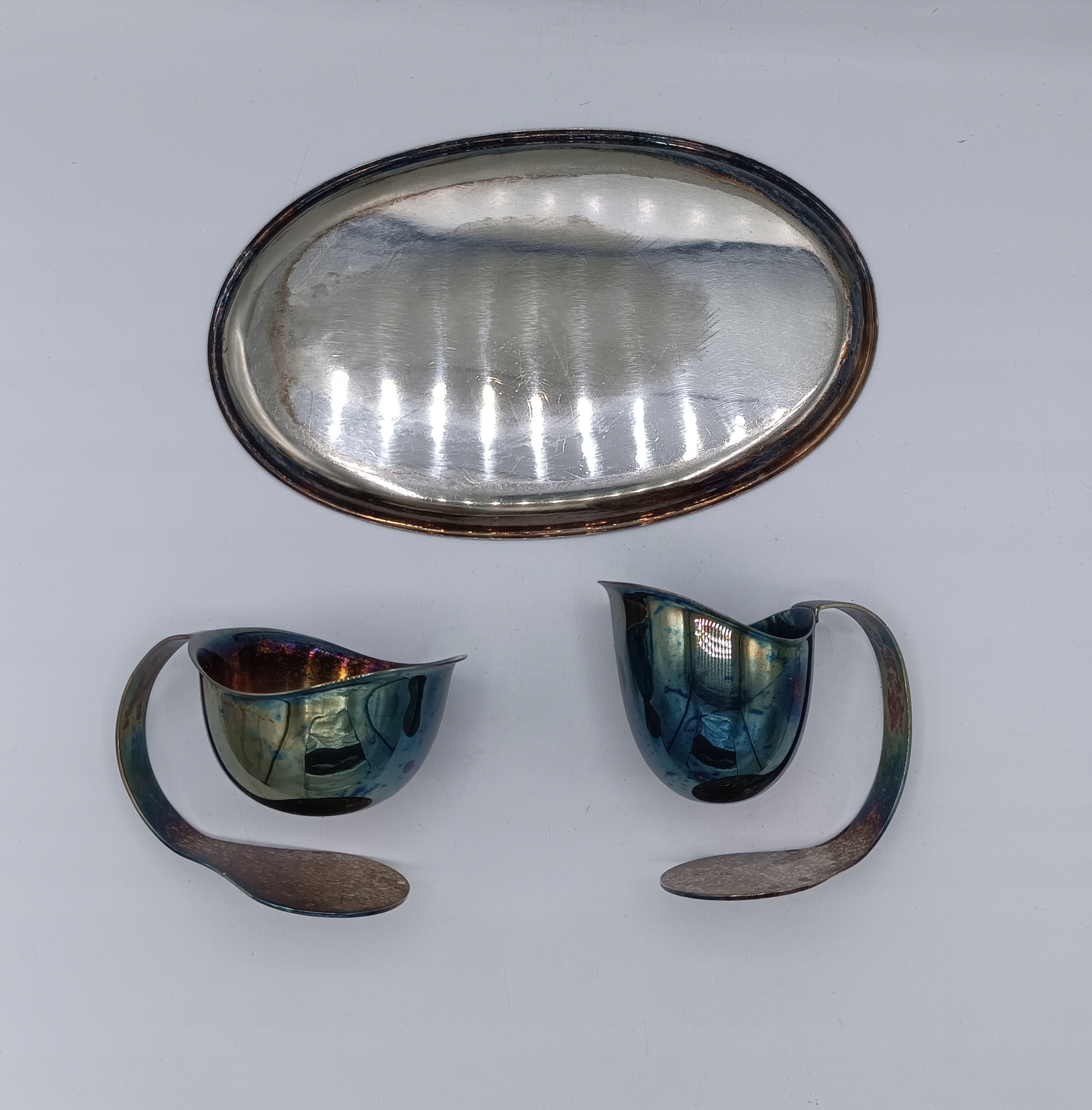 Посеребренный сервиз из трех предметов - интересные ножки, подписанный - винтаж