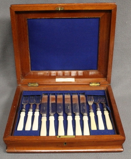 ПОСЕРЕБРЕННЫЙ НАБОР ДЛЯ ЗАВТРАКА С КОСТЯНЫМИ РУЧКАМИ.