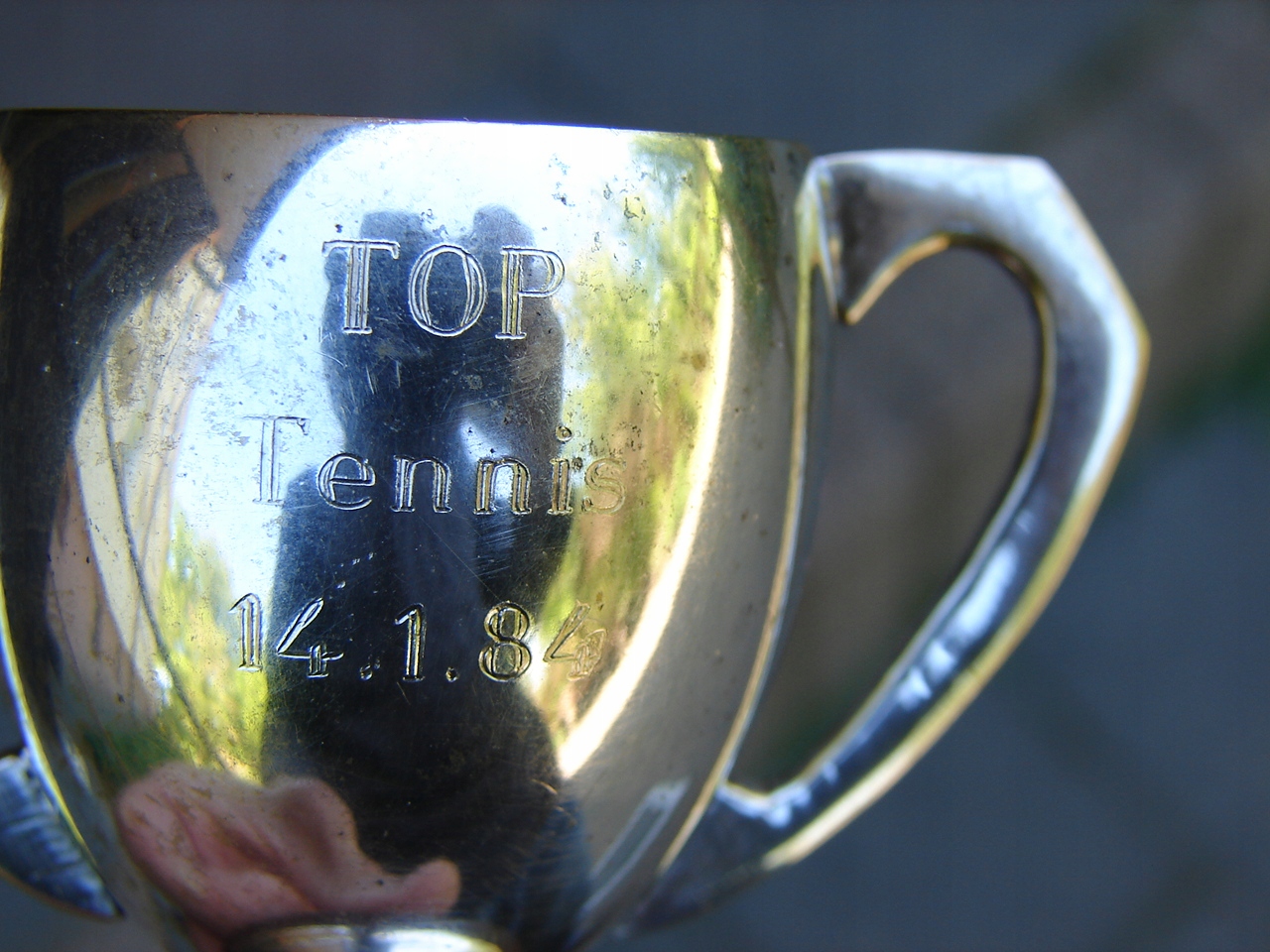 На чашке выгравирована надпись: Top Tennis 14.01.84