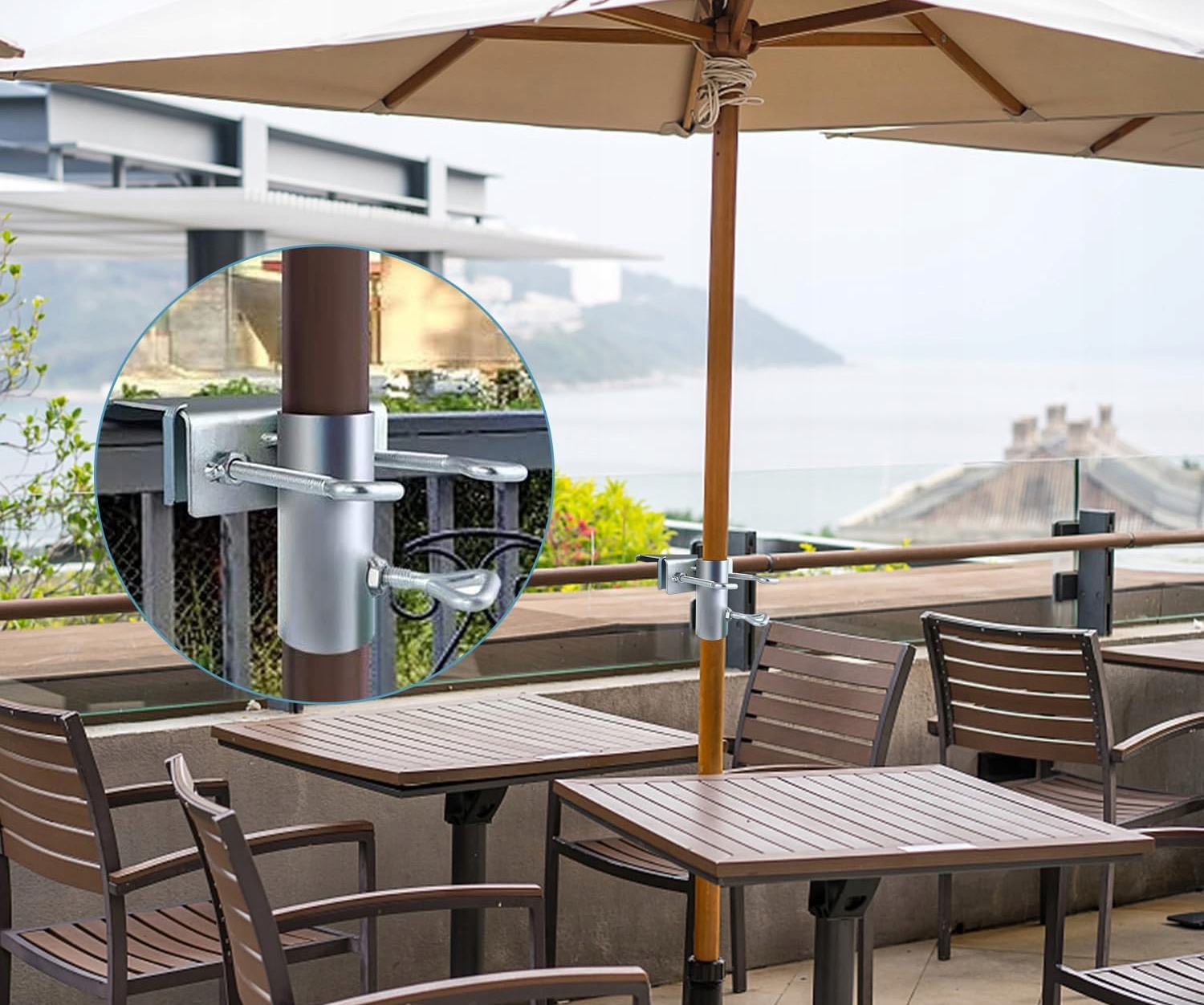 ✅ Наш продукт имеет запатентованную структуру с практическим зажимным листом, который косвенно закрепляет зонтик, предотвращая повреждение его палки. Благодаря компактному дизайну, балконный зонтик не требует дополнительного плинтуса, который устраняет проблему происхождения и обеспечивает удобный доступ и больше места на балконе