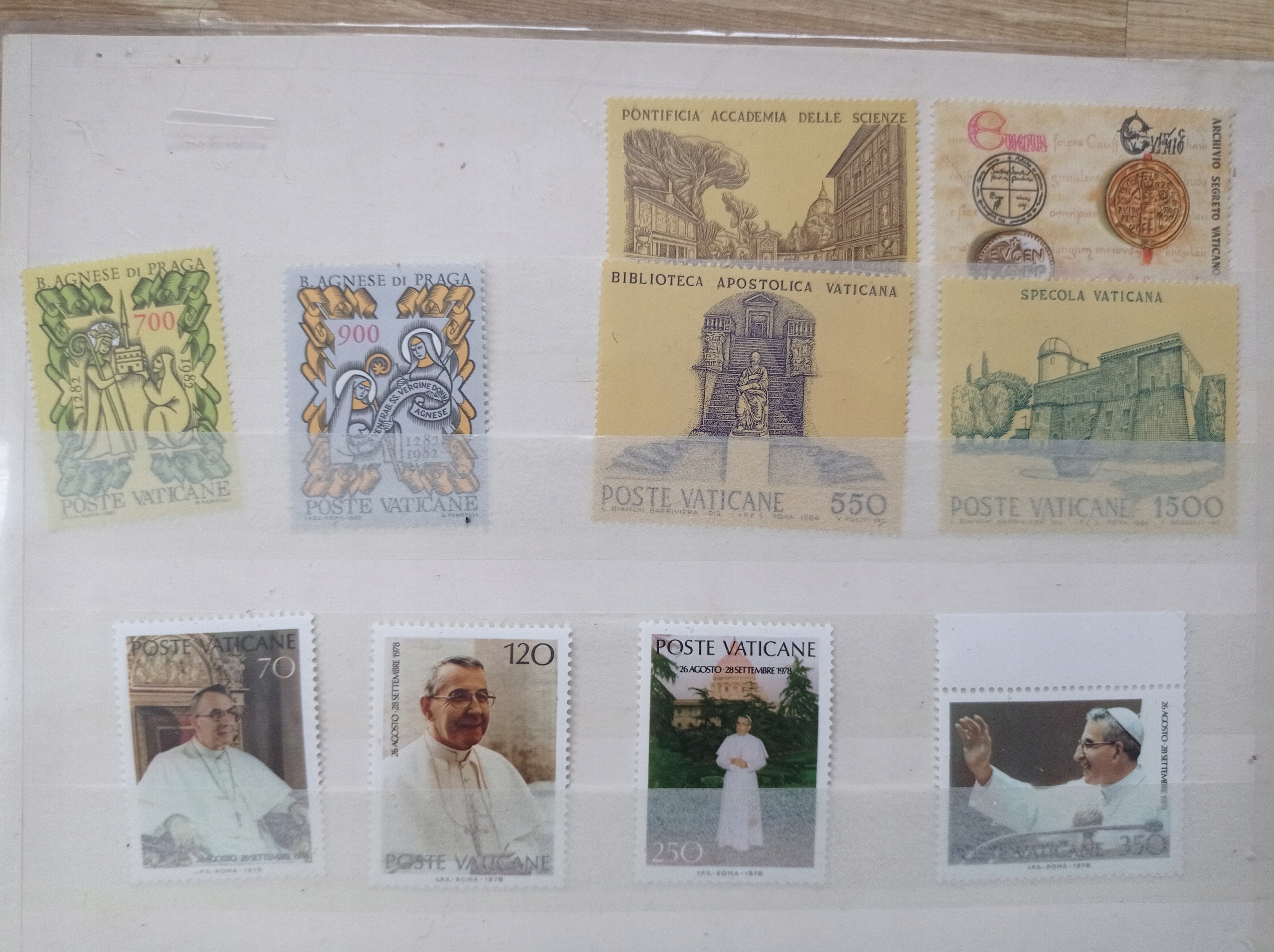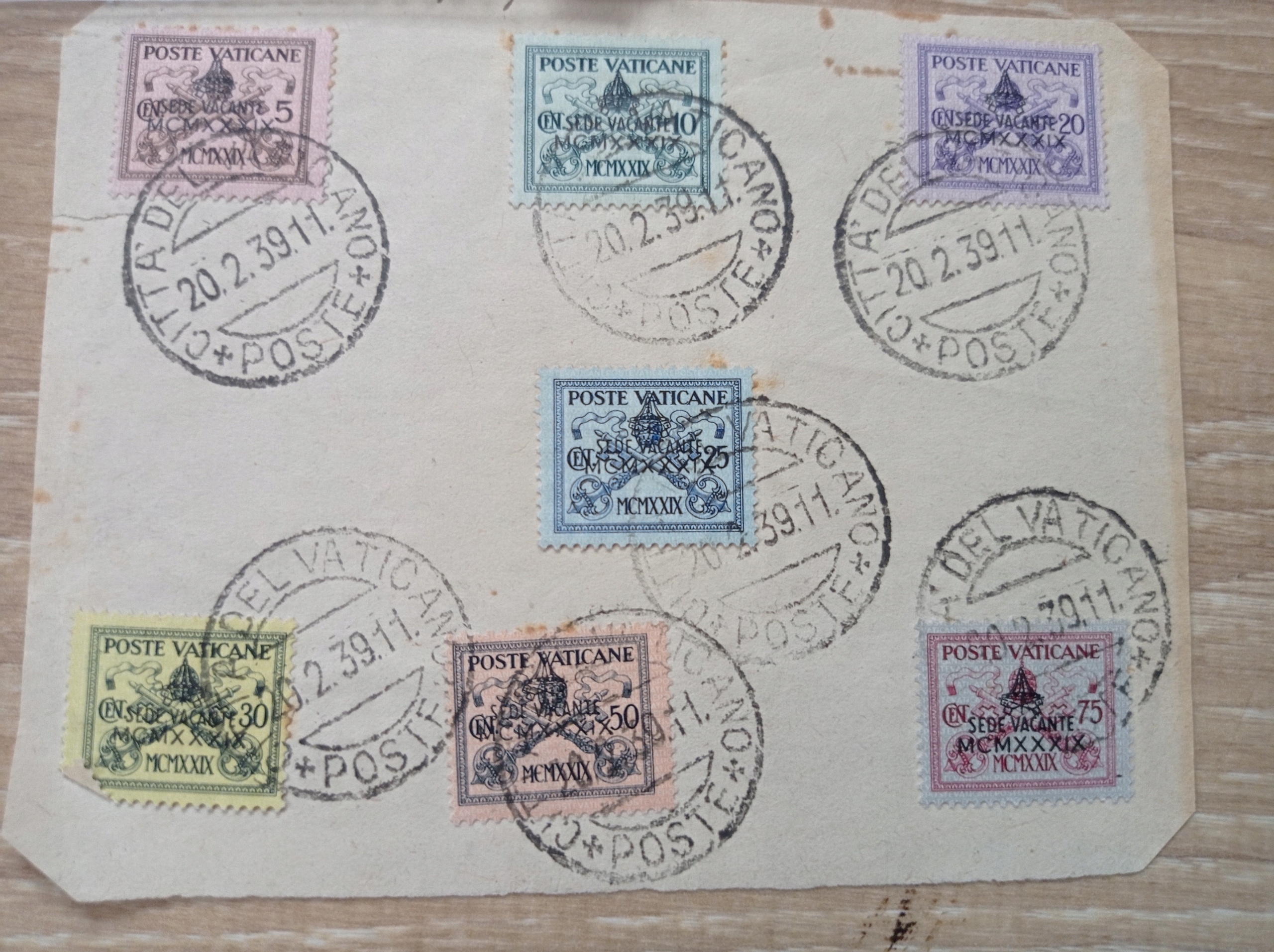 Предмет продажи — набор старых марок Ватикана, видимых на фотографиях.