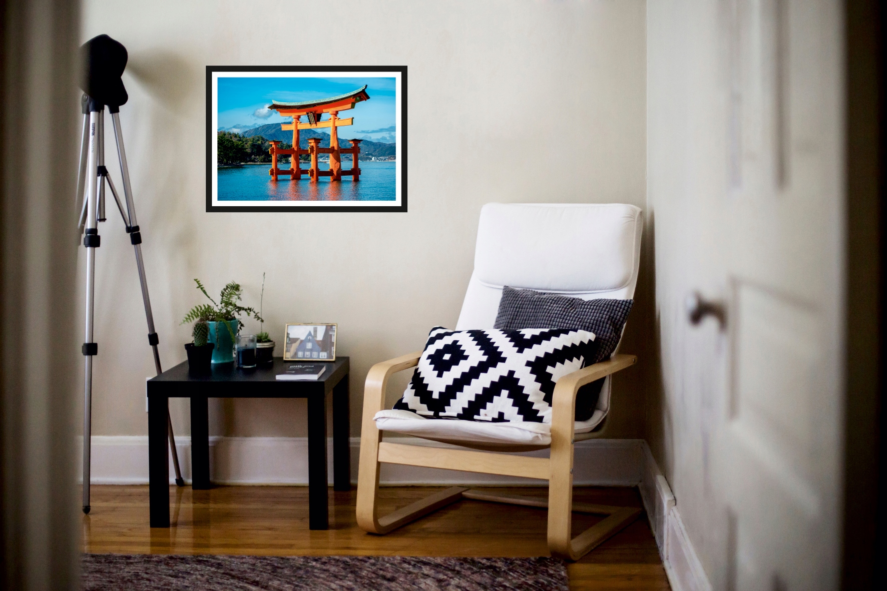 На аукционе мы продам постеры без рамки. На визуализации плаката не будет видна черная рамка.