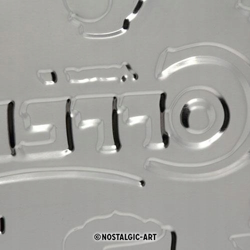 Изготовлен из прочного и жесткого листового металла, размер 30х40см. Окрашены устойчивой к истиранию краской и дополнительно защищены защитным лаком. Форма купола и мотив рельефные. Упаковано в фольгированную упаковку. На вывесках появляются различные тематические мотивы, каждый из которых имеет разное значение или является историей известного мирового бренда. Продукция НОСТАЛЬГИК-АРТ всегда может стать отличным подарком для ваших друзей или близких.