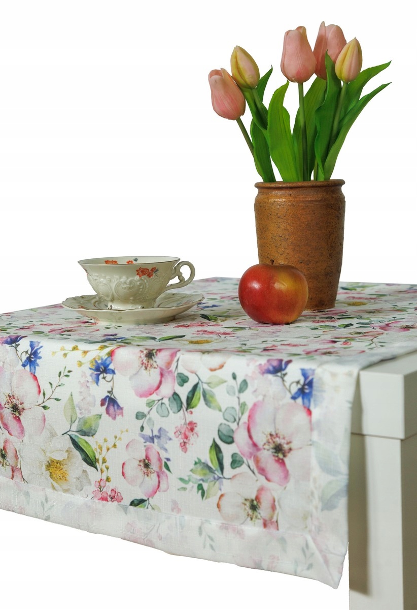 Польская шишняя комната рекомендует шить по запросу : пятно -Устойчивая, цветочная скатерть, украшенная элегантной манжетой/конвертом/плащом. Тщательное, идеальное шитье вызывает, что эта отделка является реальным украшением. Поднятая таким образом манжета также имеет еще один оттенок, со вкусом подчеркивает красоту этого столового украшения. Другим преимуществом такого метода шитья является то, что скатерть не соскользнула с столешницы (это естественный вес).