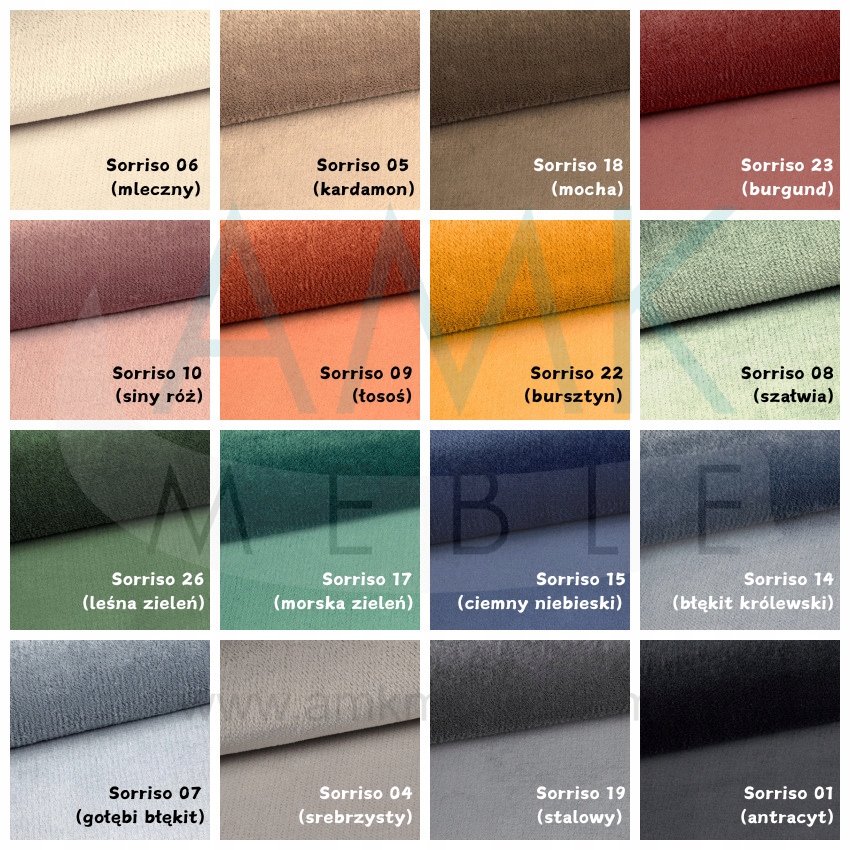 Чрезвычайно прочная ткань в виде небольшой оплетки. Он состоит из 100% полиэфирных волокон. Хотя это синтетическая ткань, она обладает необычными свойствами, которые были оценены тысячами людей по всей Европе. Прежде всего, это очень долговечно приятно на ощупь, и это также быстро -суета. Не укрепляется во время использования. Устойчивый к свету - не исчезает. Ткань Lux должна быть очищена только деликатными средствами для очистки обивки. Не промывайте влажными или отбеливаемыми с коррозионными химическими веществами. Ткань из -за синтетического состава волокон не устойчива к высоким температурам, поэтому ее не следует гладить.
