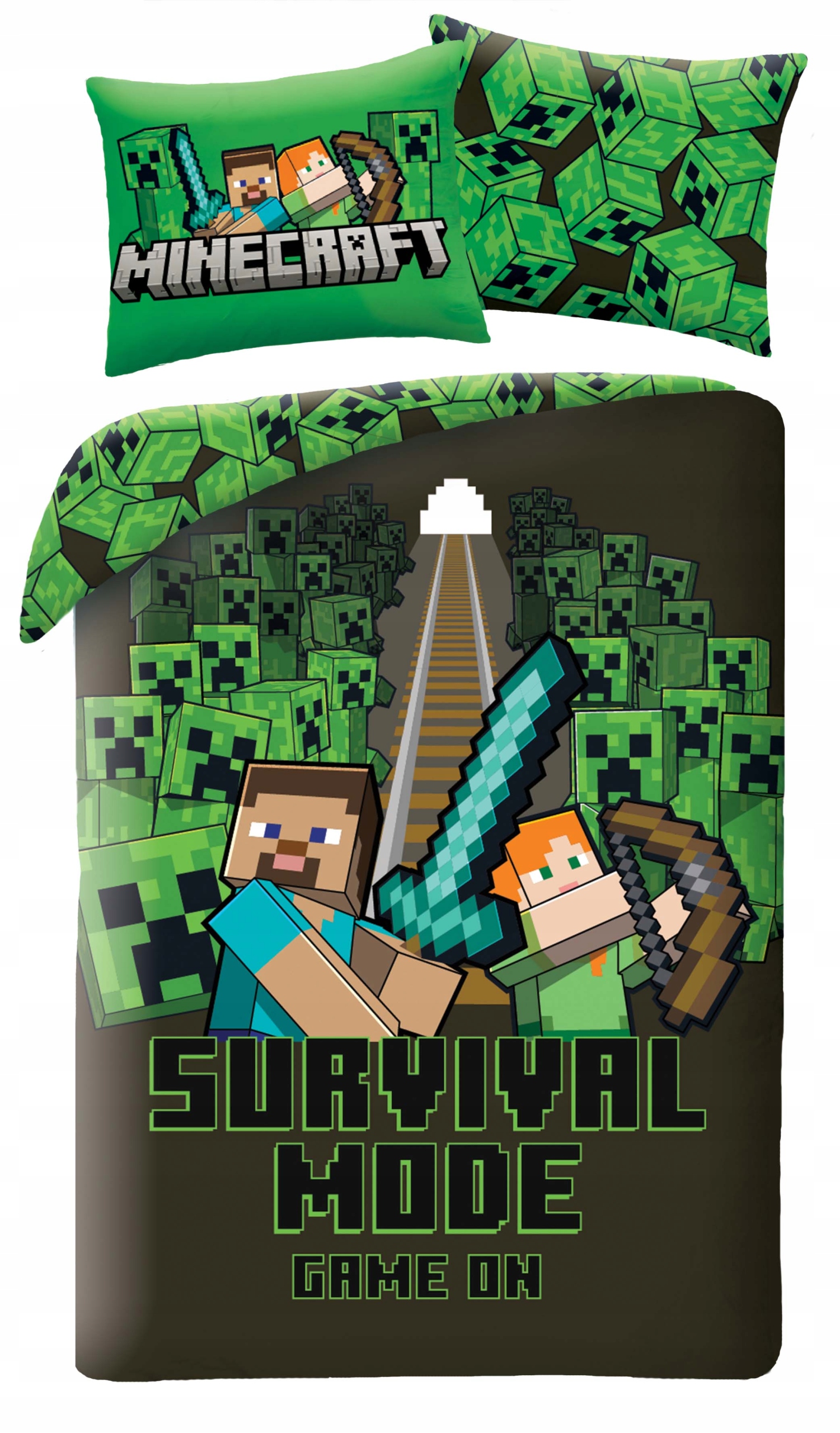 ПОСТІЛЬНА БІЛИЗНА 140х200 MINECRAFT ALEX STEVE CREEPER ЗЕЛЕНА МОЛОДІЖНА SURVIVAL