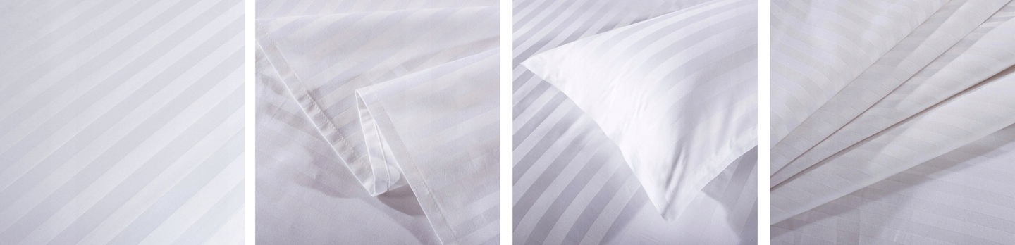 Гостиничное постельное белье со специальными выступами, позволяющими быстро и легко менять комплекты. Постельное белье сплетено полосами шириной 1 см.