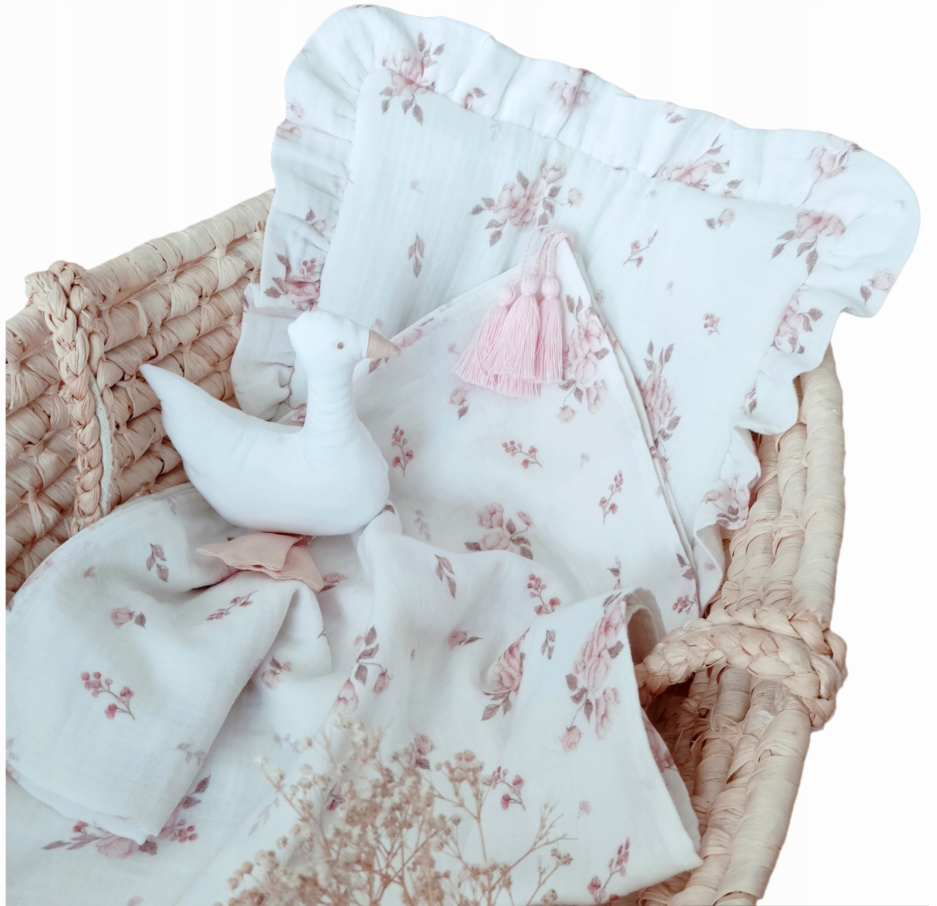 Постільна білизна з мусліну в коляску, подушка з воланом