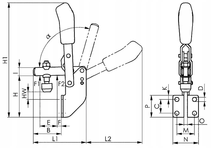 выполнение: быстрое столкновение, вертикальное, с рычагом с открытым давлением и угловой ногой. Оцинкован и прошел. Заклепки из нержавеющей стали движутся в диффузионных закаленных рукавах подшипника; Из -за отсутствия места он не относится к размеру 1. Эргономическая ручка, устойчивая к эффектам масла, с большой поверхностью адгезии ручной, из мягких компонентов. Безопасный элемент зажима с защитой пальцев. Защита от потери винта давления в конце руки давления.
