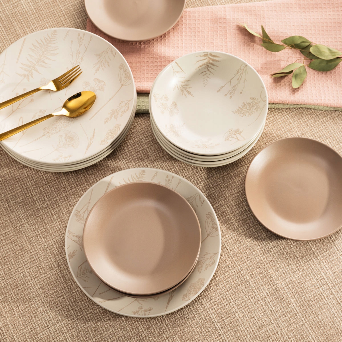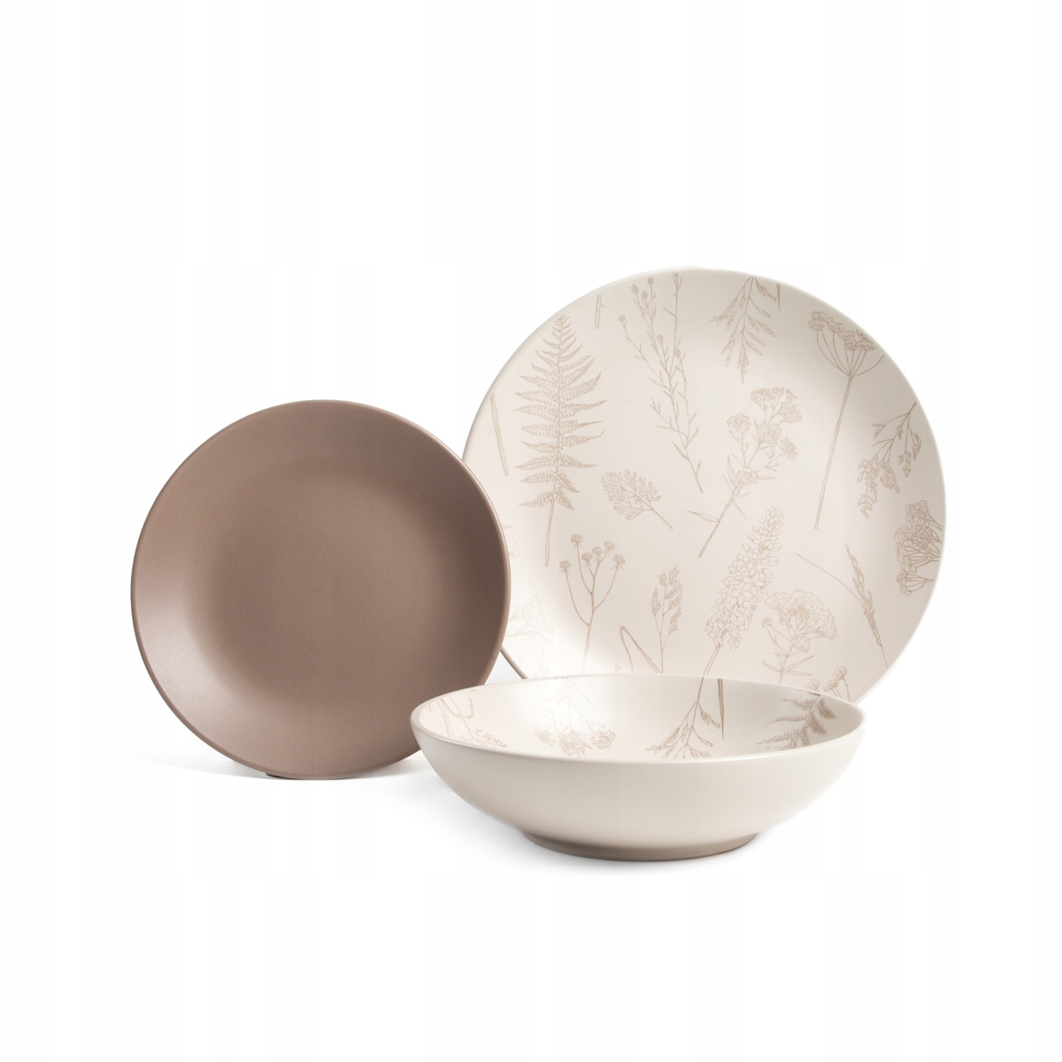 BARIПосуда из керамогранита - 18 предметов, бежевого цвета с растительным мотивом.