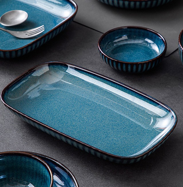 - Название: синяя посуда в скандинавском стиле, обработанная в печи