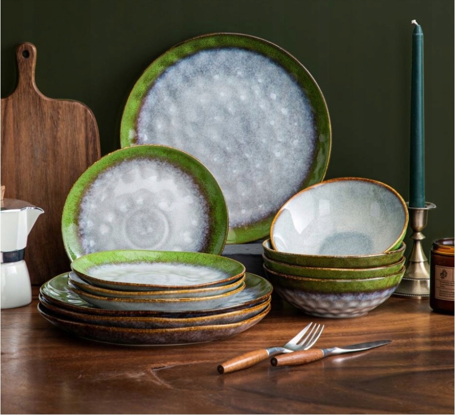 Неровный край, вогнутости и Выпуклости придают посуде чистый и естественный вид.