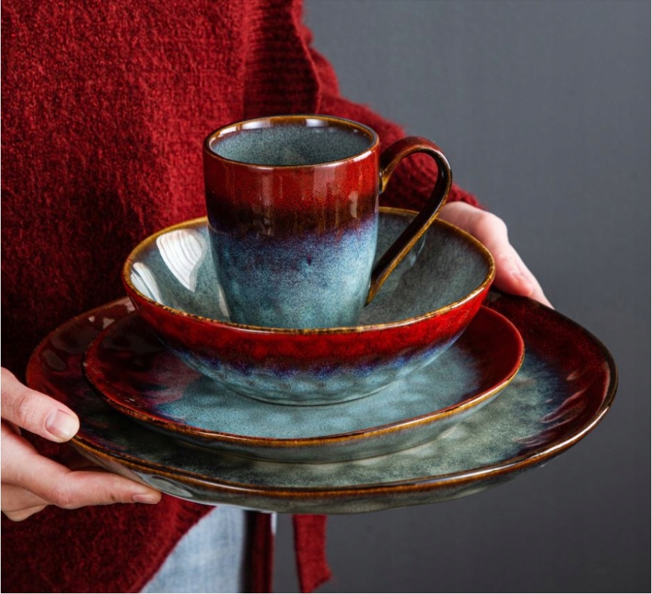 Неровный край, вогнутости и Выпуклости придают посуде чистый и естественный вид.