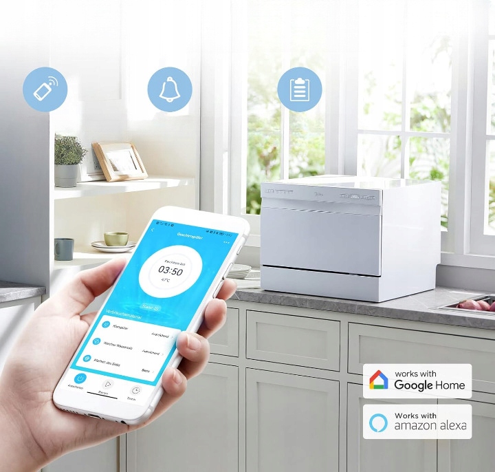 - Функция IOT- благодаря интеллектуальной функции IOT настольная посудомоечная машина в сочетании с Практичное приложение MSmartHome может сделать повседневную жизнь дома более комфортной. Вы можете легко контролировать и контролировать все процессы стирки со своего смартфона. Встроенная функция документирования предоставляет четкие факты и цифры о потреблении, например, о потреблении воды и энергии.