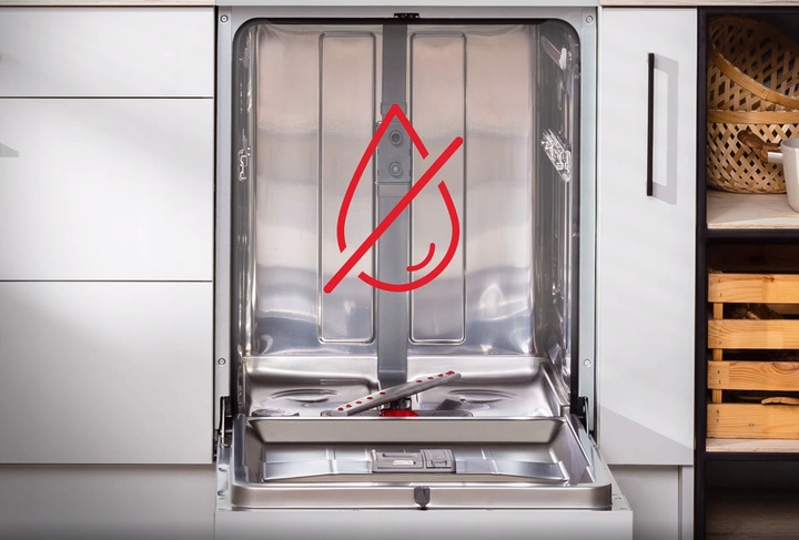 OpenDry означает, что больше не нужно вытирать недосушенную посуду! Автоматически открывающаяся дверца посудомоечной машины на последнем этапе сушки позволит посуде высохнуть быстро и естественным путем. Это энергосберегающее и совершенно безопасное решение – расстояние, на которое открывается дверца, составляет 7-10 см, а влажный воздух, выходящий из посудомоечной машины, имеет температуру макс. 40°C, поэтому он не конденсируется на мебели и не причиняет ей вреда.