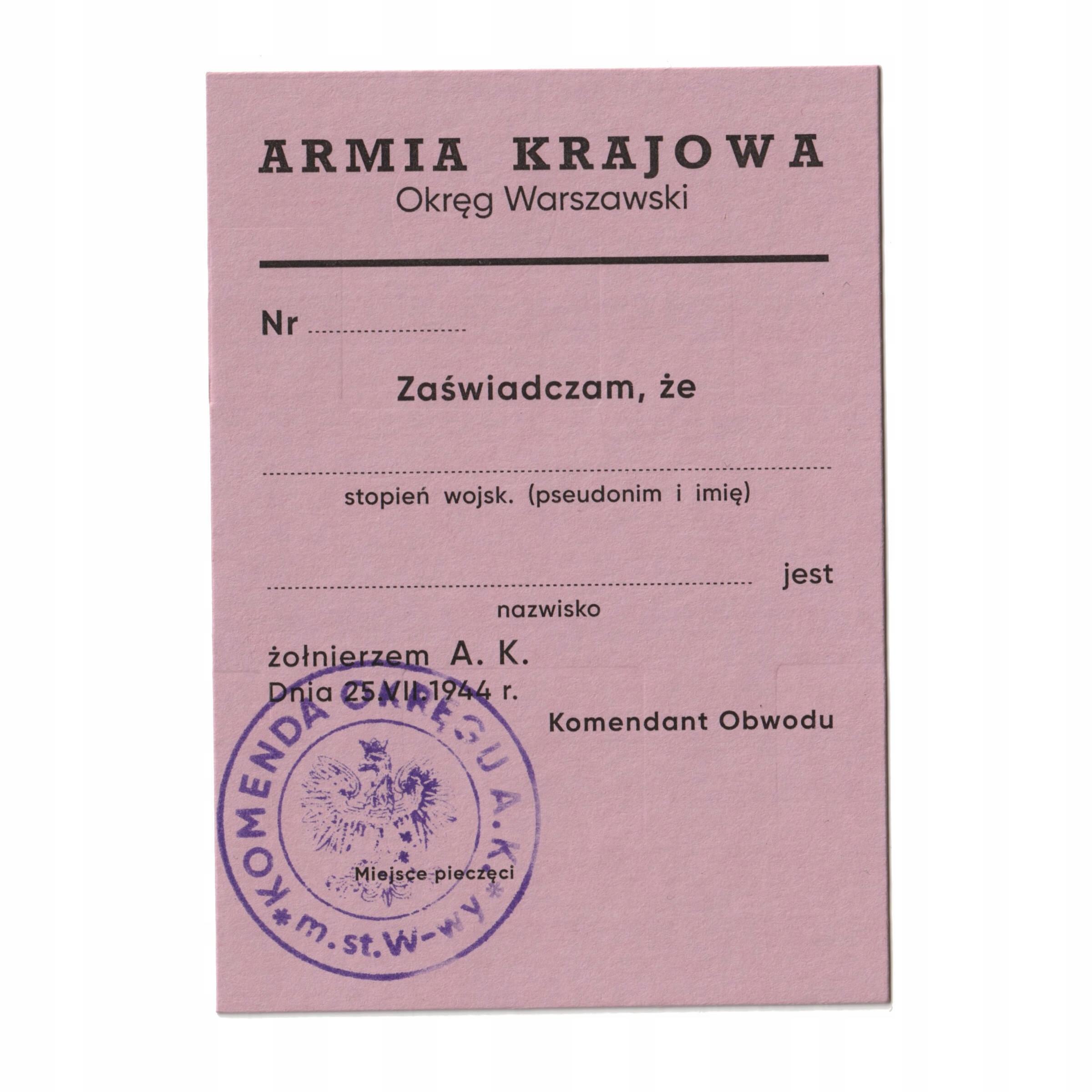 Посвідчення АК, ВРШАВСЬКЕ ПОВСТАННЯ, РЕПЛІКА